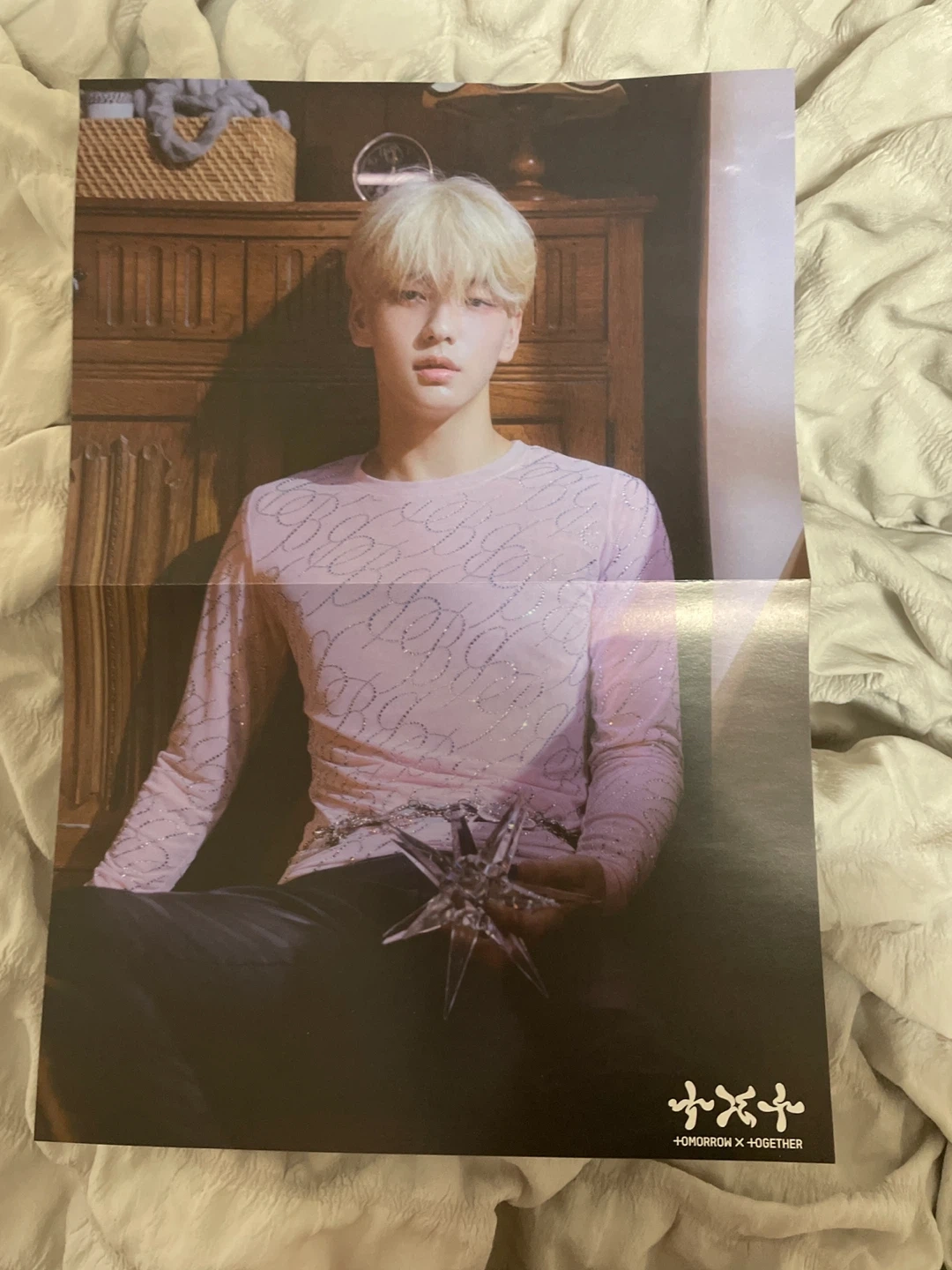 TXT Temptation album, includes: Soobin photobook, one medium sized soobin poster, and one smaller one, yeonjun photocard, and the CD!