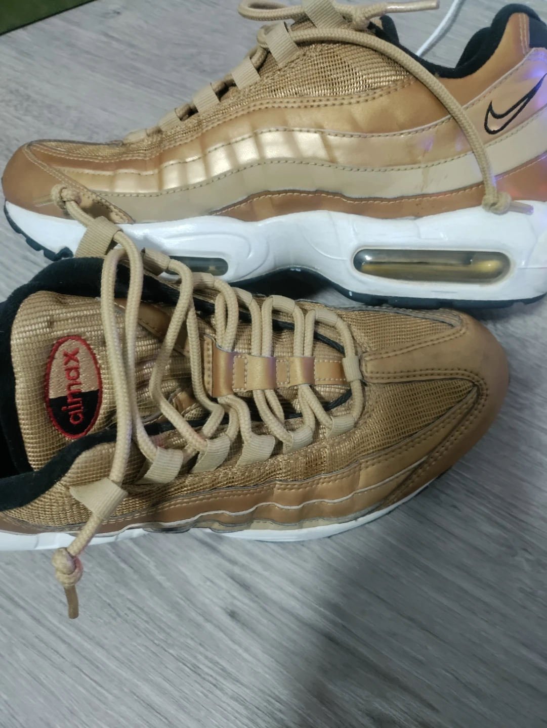 Gold Nike Air Max 95 sneakers. Features the iconic Air Max cushioning system. A standout colourway that's sure to turn heads!
