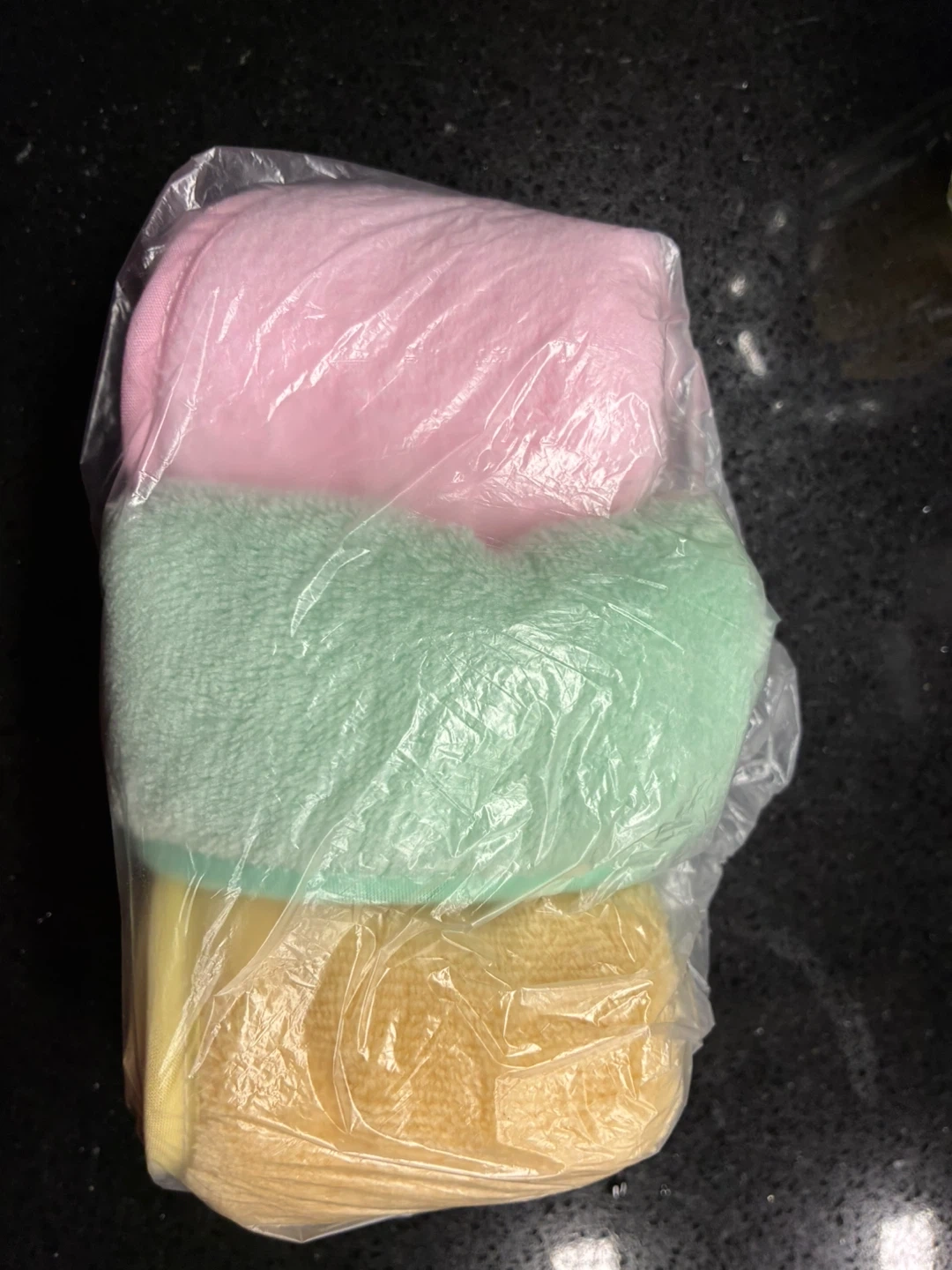 Set of 3 reusable makeup remover pads in pink,yellow, and green. Made from a soft, plush material. Brand new.