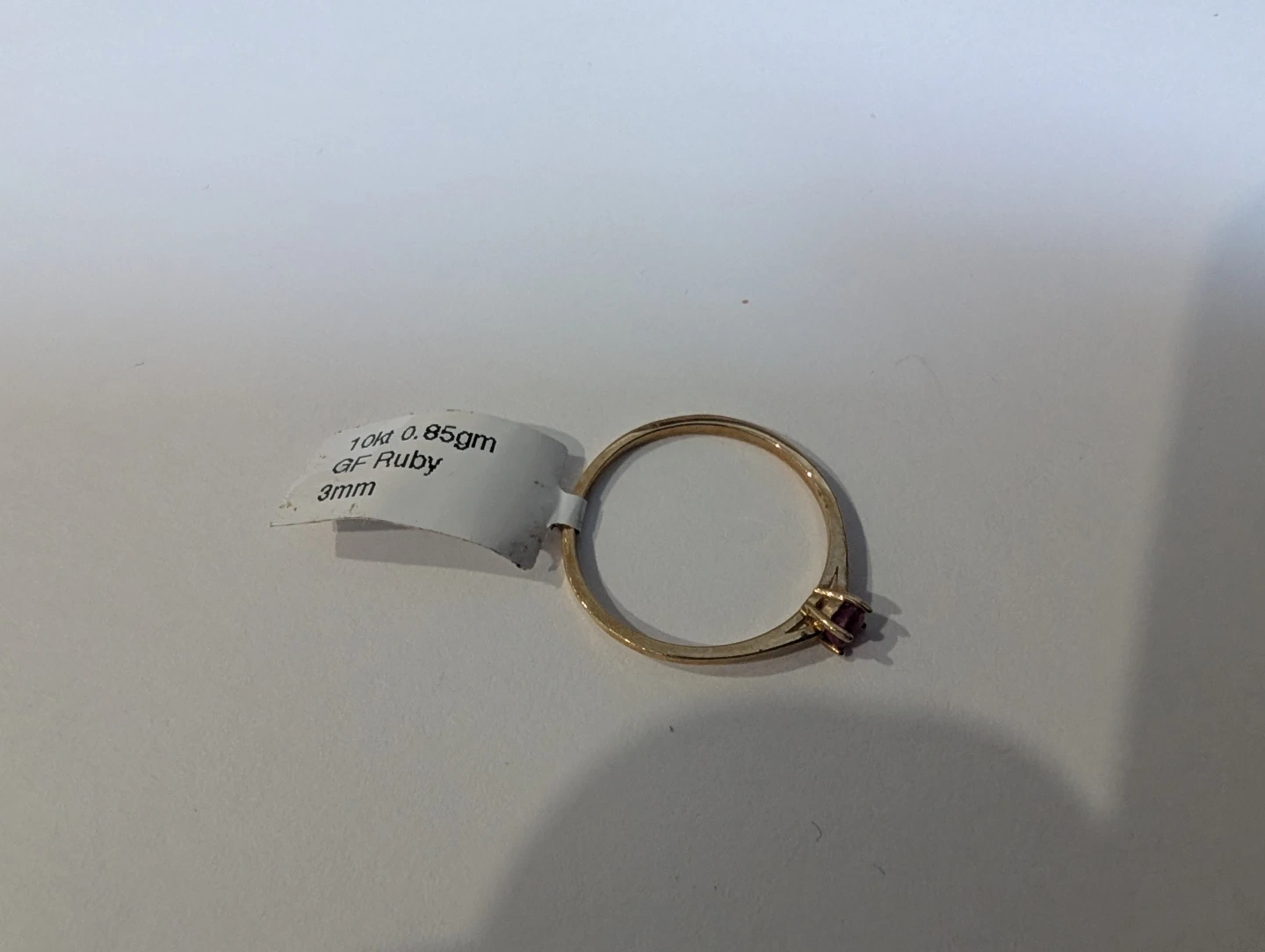 Brand new 10kt yellow gold natural genuine ruby gemstone ring for sale. Size 6.5 gold ring, 0.85 grams, made in Canada, July birthstone gem stones. $180 FIRM.