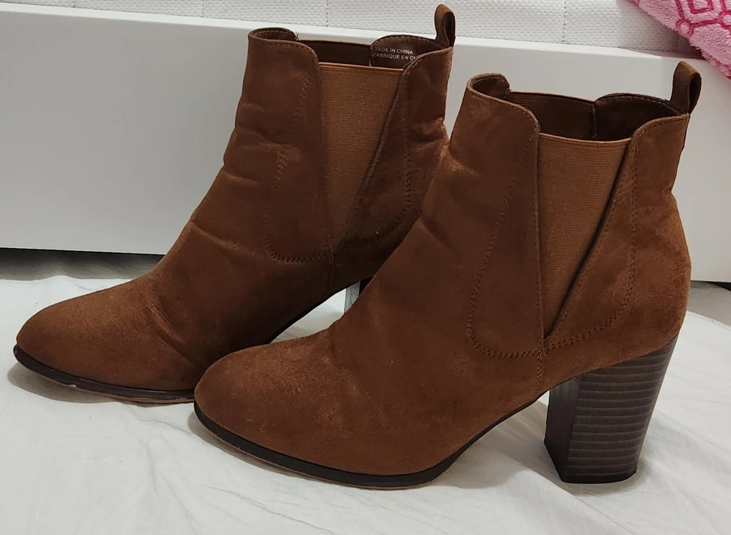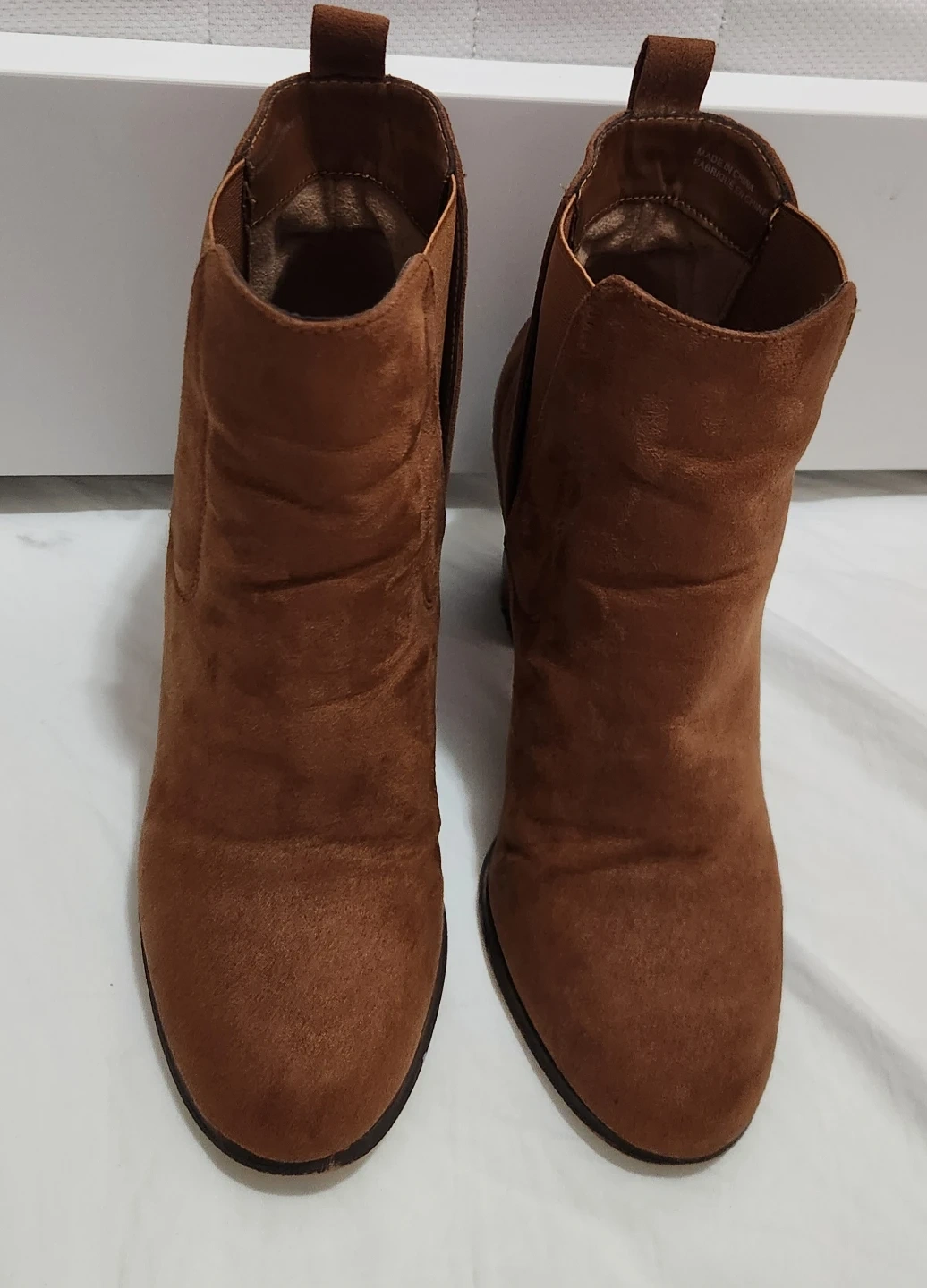 Fashion Boots with elastic side panels. They have a stacked block heel and a pointed toe. Perfect for dressing up or down! Size US 8