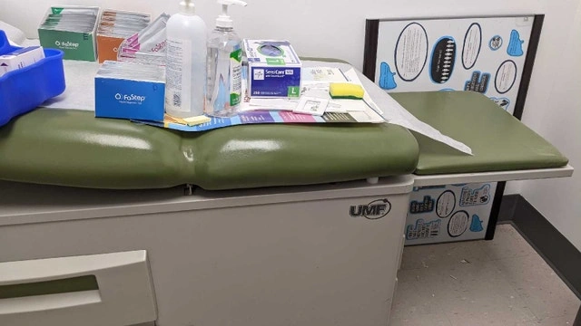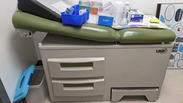 I'm offering a used UMF medical examination table, perfect for any clinic or medical office. The table is in good condition and has been well-maintained. It features a comfortable padded top, storage drawers, and a pull-out step stool for easy access. Here are some additional details: * Brand: UMF * Type: Medical Examination Table * Condition: Used, good condition * Features: Padded top, storage drawers, pull-out step stool If the ad is up, it's still available!