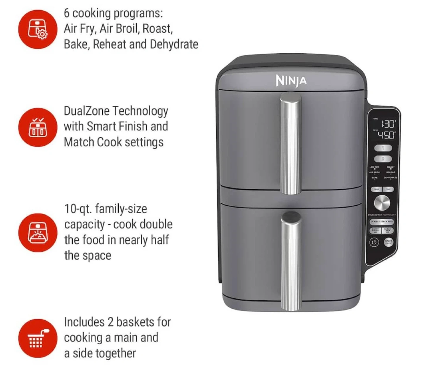 Ninja DoubleStack XL Air Fryer w 2 Baskets & 6 Functions