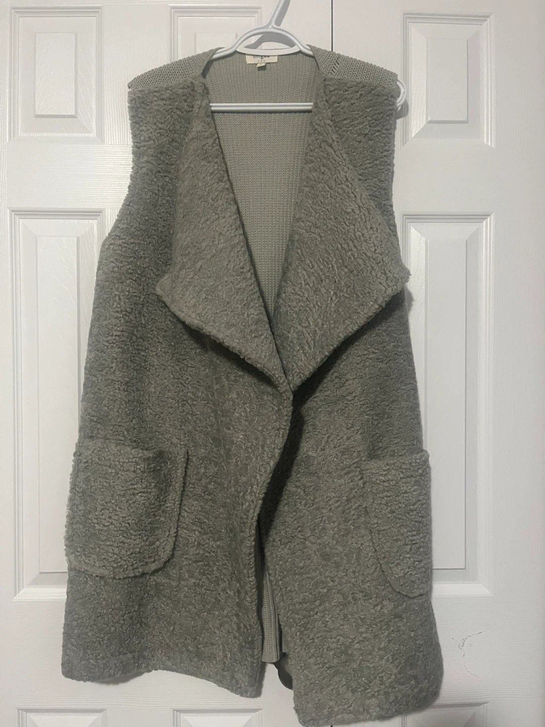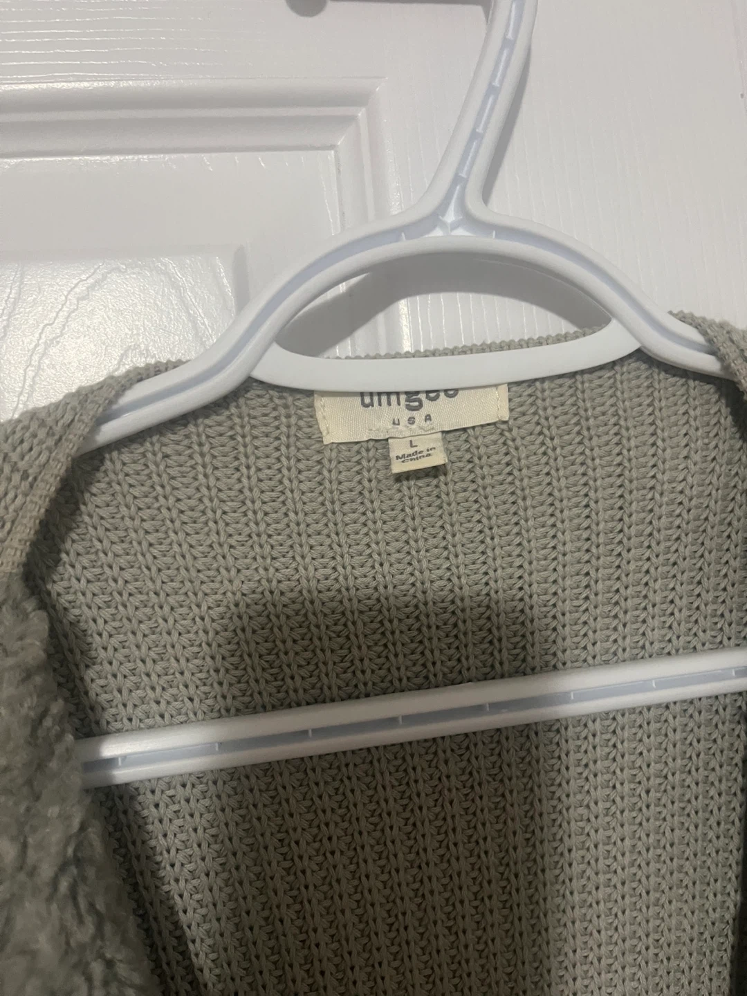 98Cozy Umgee USA vest, perfect for layering! It's a size large and has a unique design with a knit body and sherpa-like accents. Great for adding some texture to your outfit