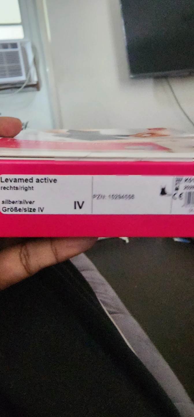 Medi Levamed active ankle support brace for the right foot. It's a size IV in silver and features an integrated silicone pad for massage effect and reduction of swelling. This knitted fabric provides comfort and support.