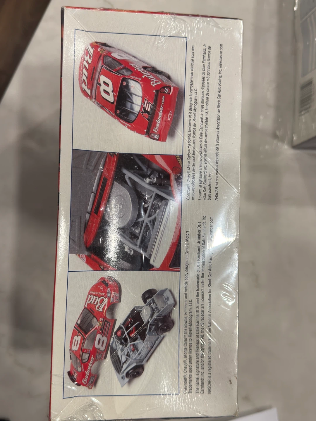 Selling a Dale Earnhardt Jr. #8 Budweiser 2003 Monte Carlo model car kit. It's 1/24 scale and still in the original box! This adult collectible is for ages 21 and up, with a skill level of 3. The box includes driver figures and is molded in white and transparent with clear parts. Features include: