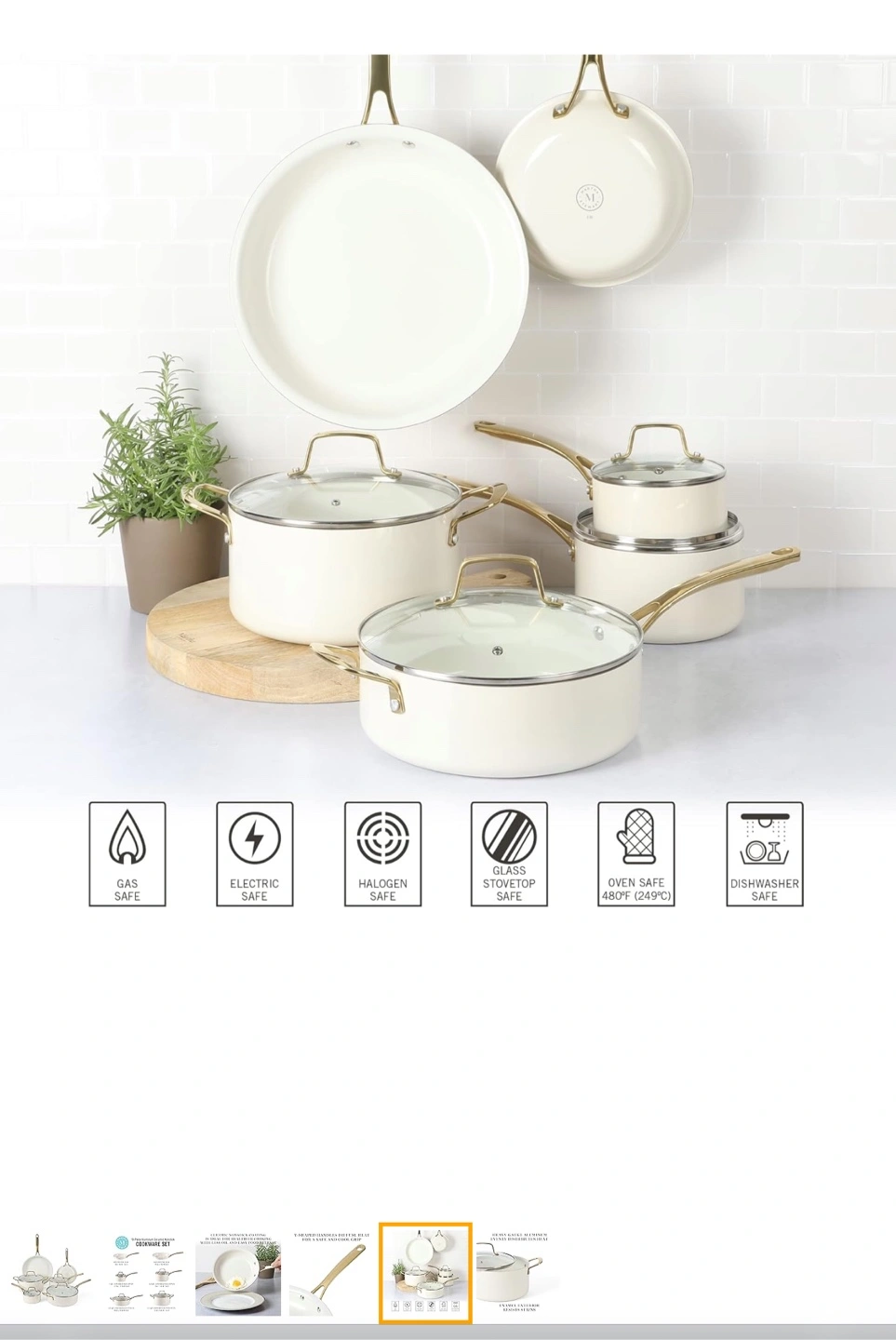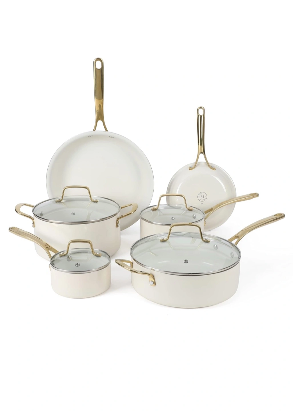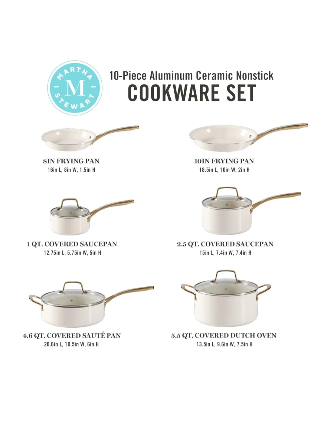 Martha Stewart 10-Piece Cookware Set - Aluminum Ceramic Nonstick