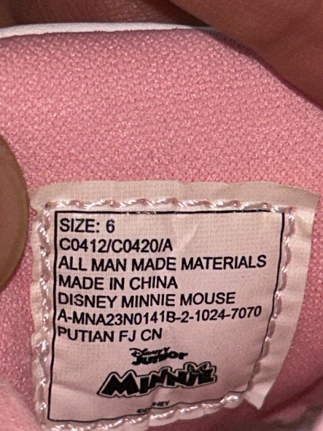 These adorable Disney Junior Minnie Mouse sneakers are perfect for your little one! They are a size 6 and feature a cute Minnie Mouse design with floral accents. Made with all man-made materials, they're durable and easy to clean