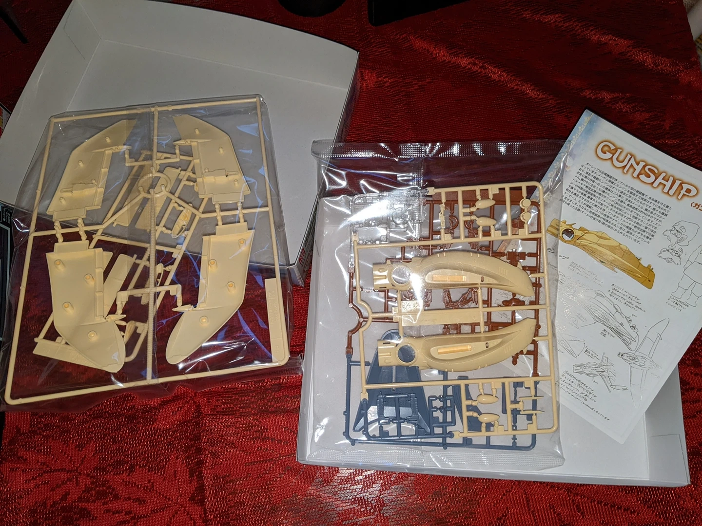 Plastic model kit (unbuilt and unpainted of course) of the Gun Ship from Studio Ghibli's Nausicaa of the Valley of the Wind.