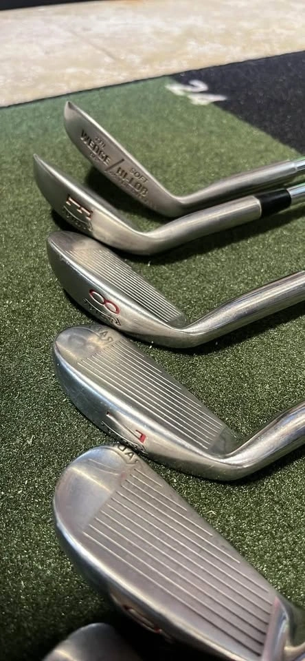 An older set of quality Hogan blade irons. Three iron to log wedge, eight clubs in total. Faces and grips are in good shape and have lots of life left. A great set of reasonably priced irons for someone starting out in the game. $115 O.B.O.