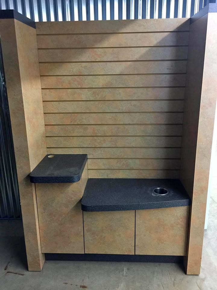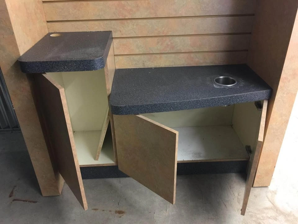 Display kiosk in good condition. Hardwood. Approximately 350 lb. Dimensions: 193 cm x 138 cm. Feel free to message if you have any questions!