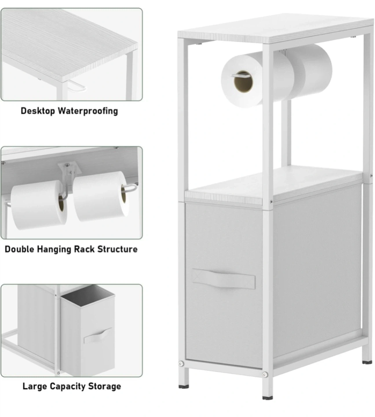 New Narrow Storage Cabinet with Toilet Paper Holder and Storage