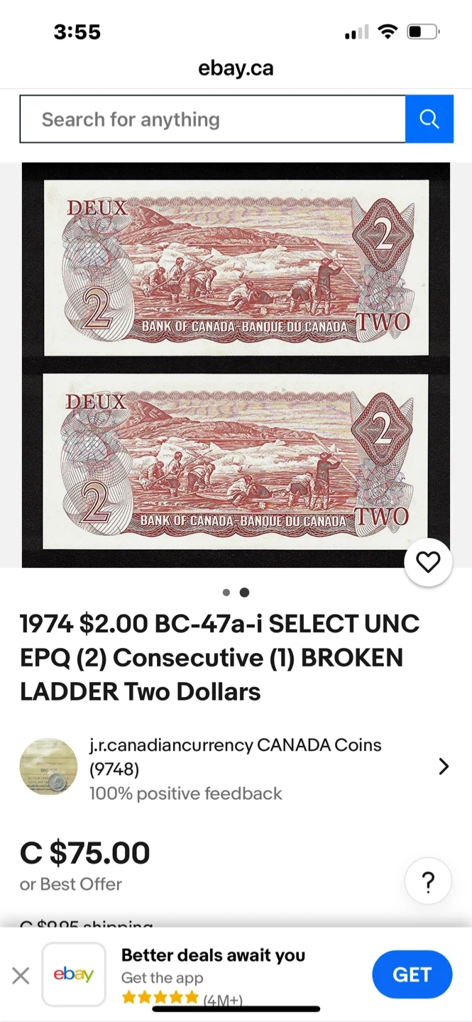 Selling a Canadian $2 bill from 1974. It's a neat piece of Canadian history!