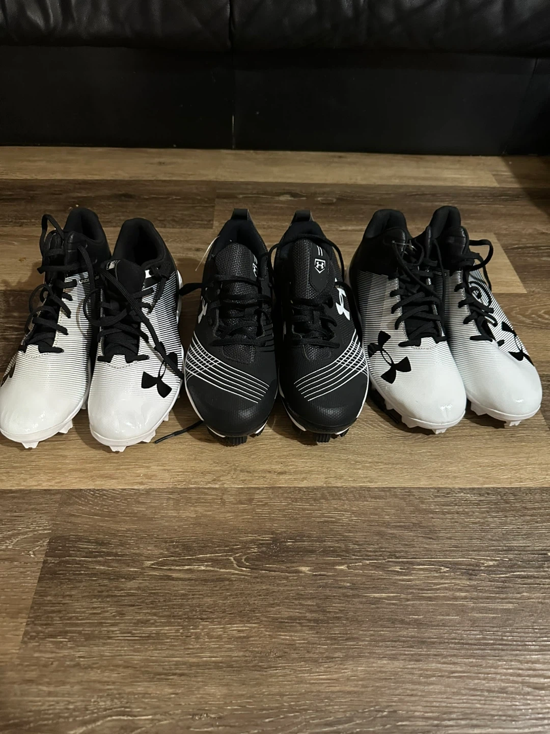 10Selling a pair of Under Armour cleats in black and white. Great for baseball or other field sports! They are in good condition and ready for a new owner. 45$ for each.