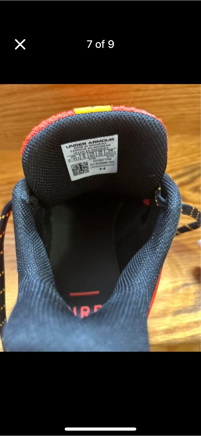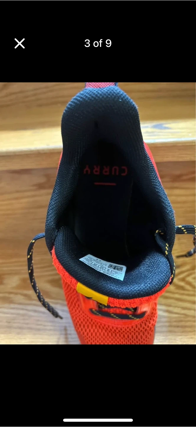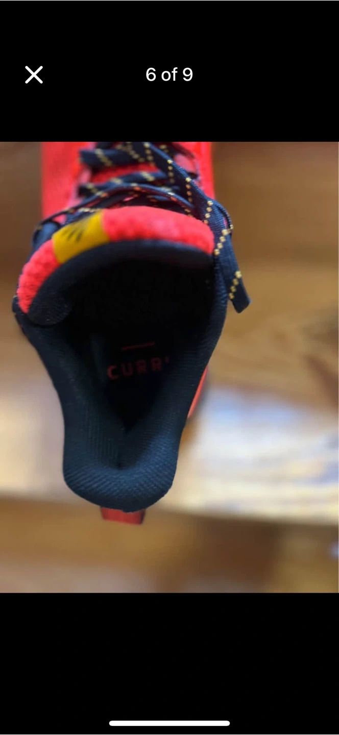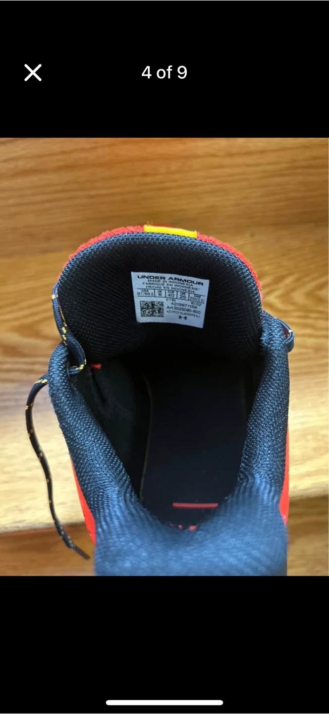 Selling a pair of Under Armour Curry 3Z6 basketball shoes in size mens 7 women 8.5 They're in great shape and ready for the court! The shoes feature a vibrant red colour with black accents. Perfect for anyone looking for a stylish and functional pair of basketball shoes