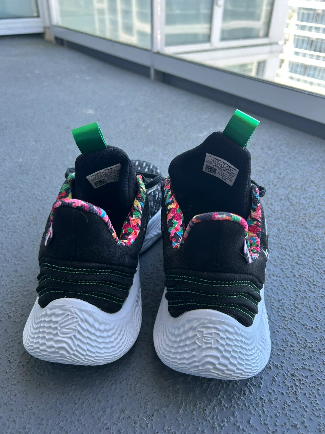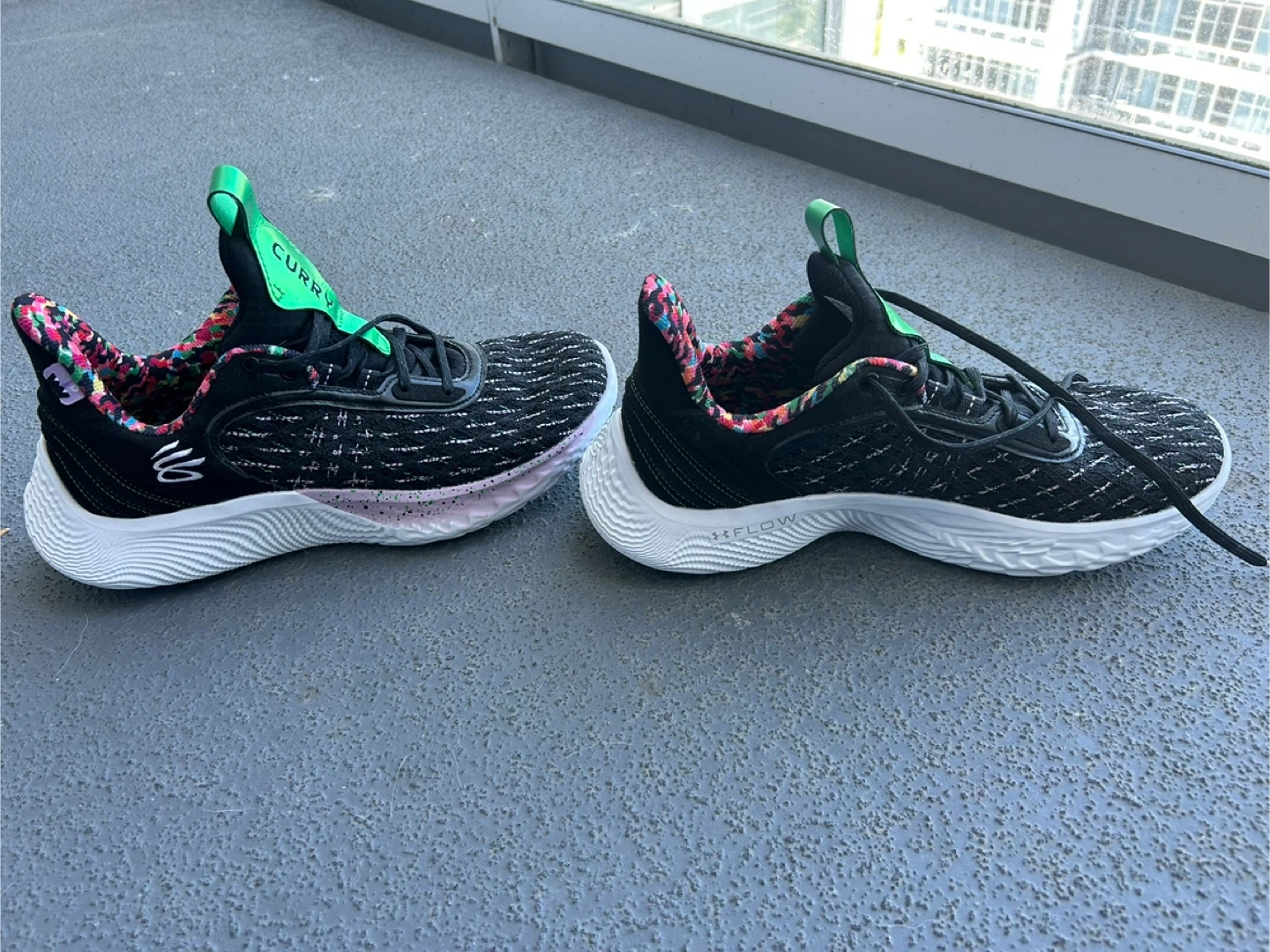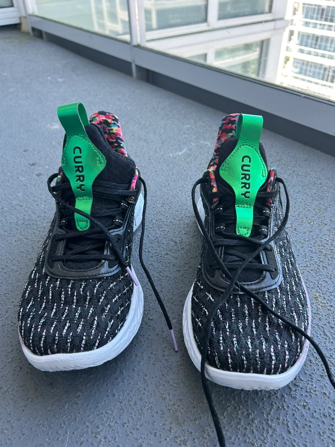 I’m selling these Curry 9 Flow basketball shoes. They’re in great condition, worn just once, so basically like new! No box or tags, but still look super fresh. Details: Size 9.5M / 11W Black/green colorway with multicolor lining Super comfortable and grippy for playing Only flaw: a little damage at the end of one shoelace (see pics), but it’s just cosmetic 📍Located in Metrotown burnaby