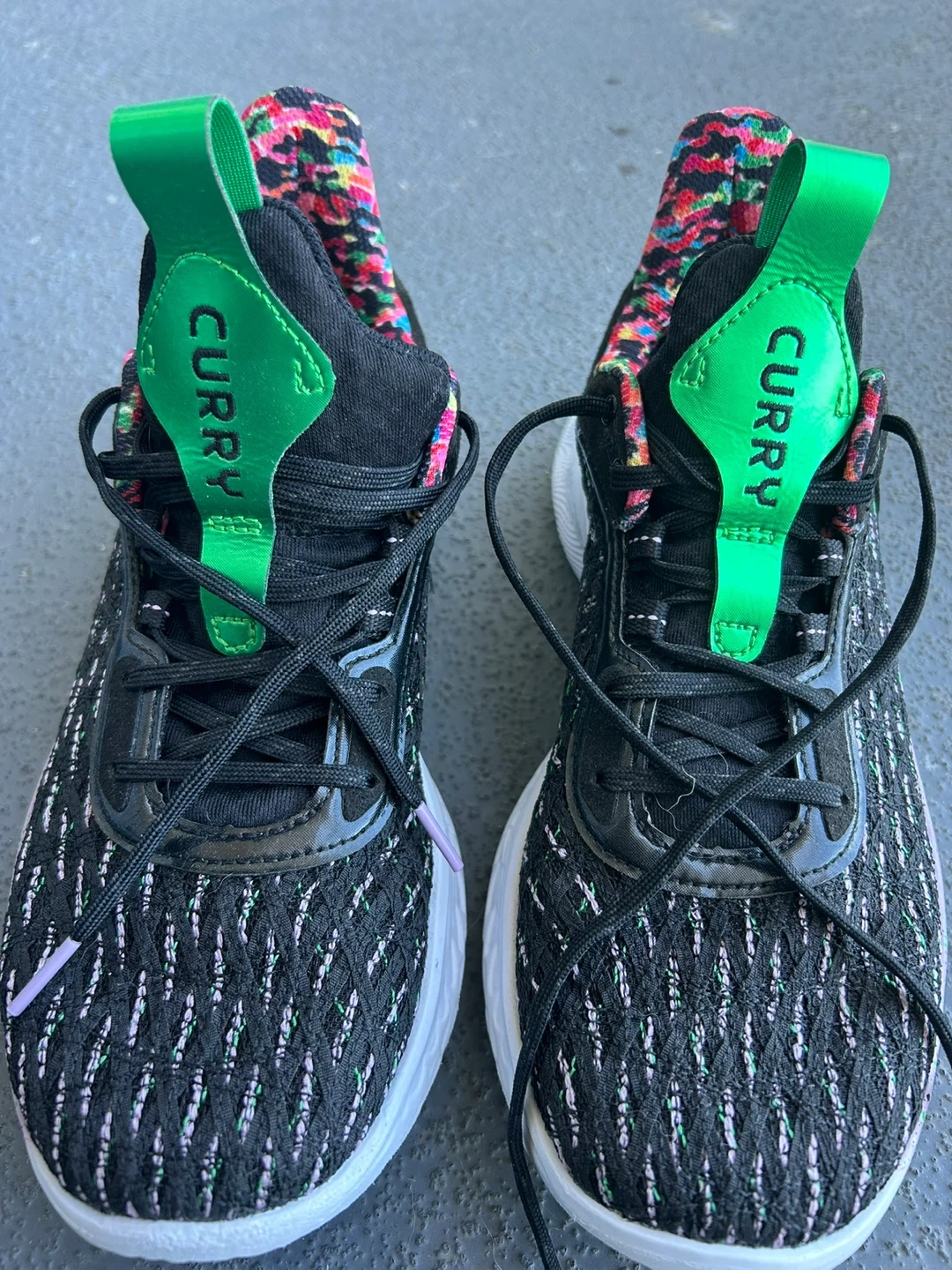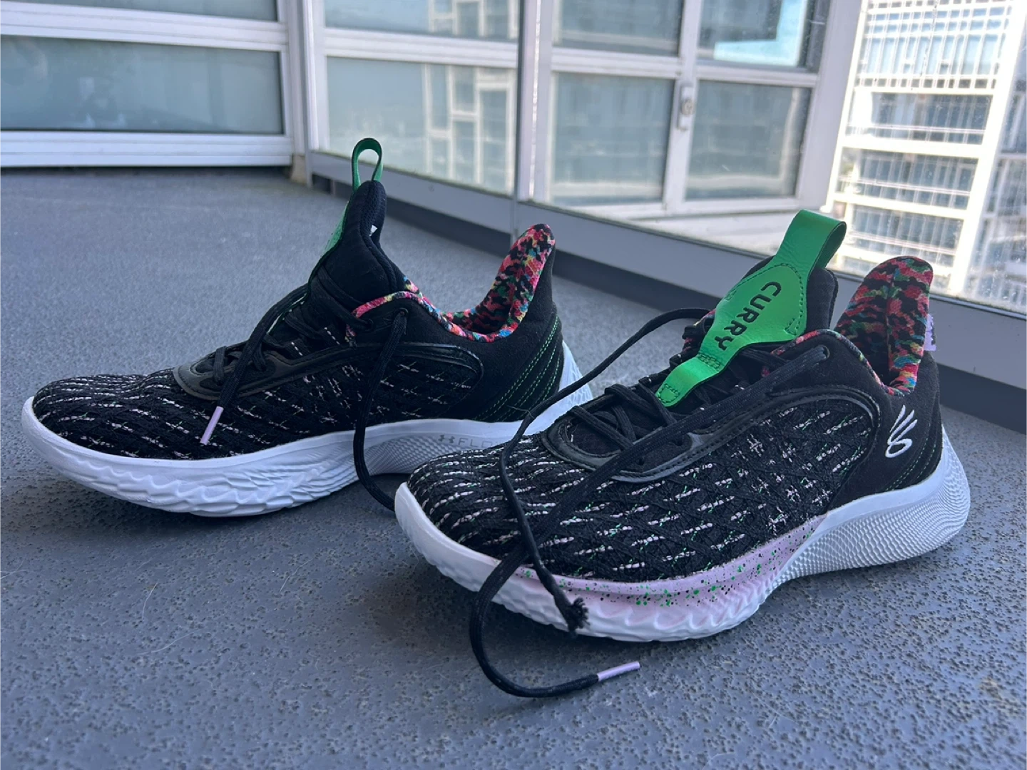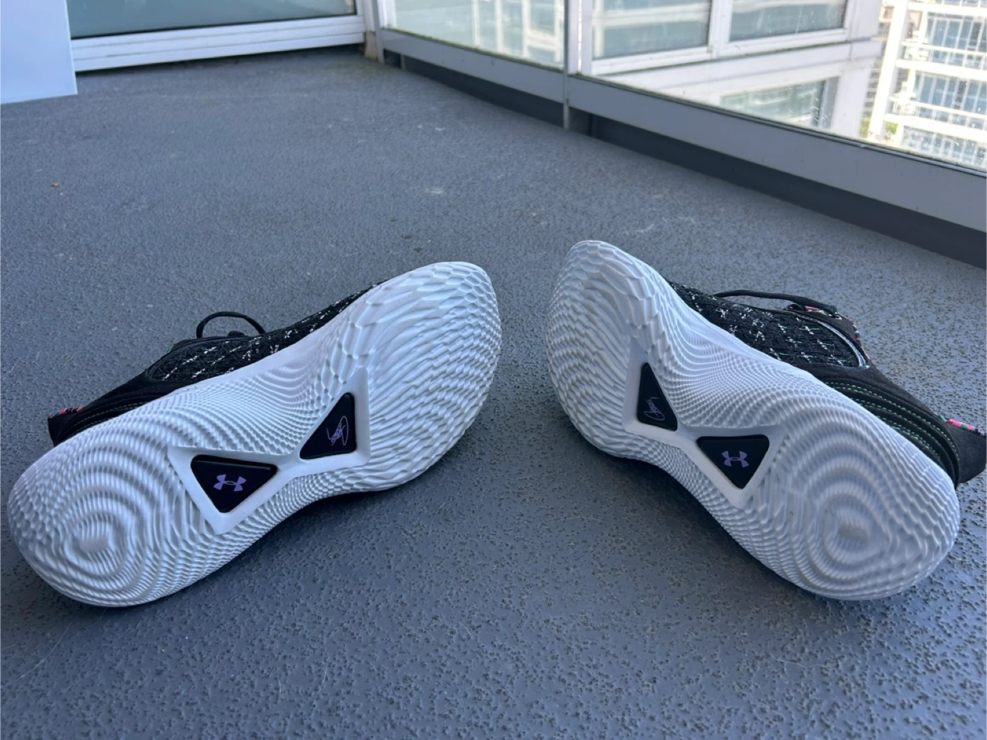 I’m selling these Curry 9 Flow basketball shoes. They’re in great condition, worn just once, so basically like new! No box or tags, but still look super fresh. Details: Size 9.5M / 11W Black/green colorway with multicolor lining Super comfortable and grippy for playing Only flaw: a little damage at the end of one shoelace (see pics), but it’s just cosmetic 📍Located in Metrotown burnaby