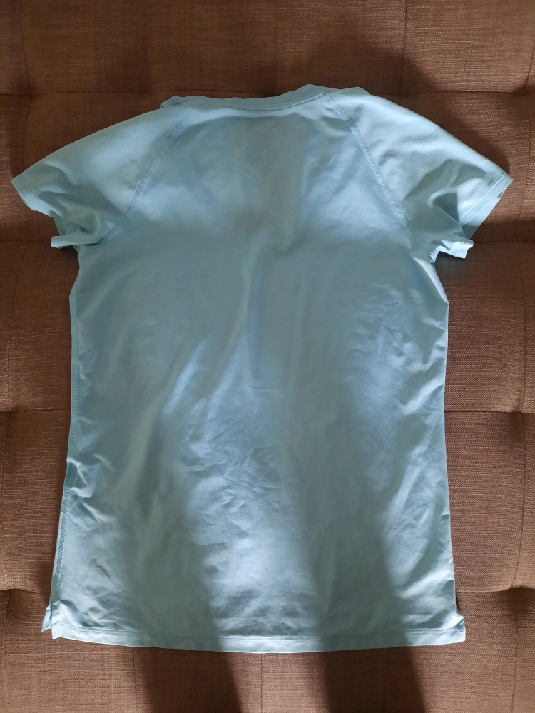 10Light blue Under Armour HeatGear fitted t-shirt. Size small/medium. Made in Mexico.