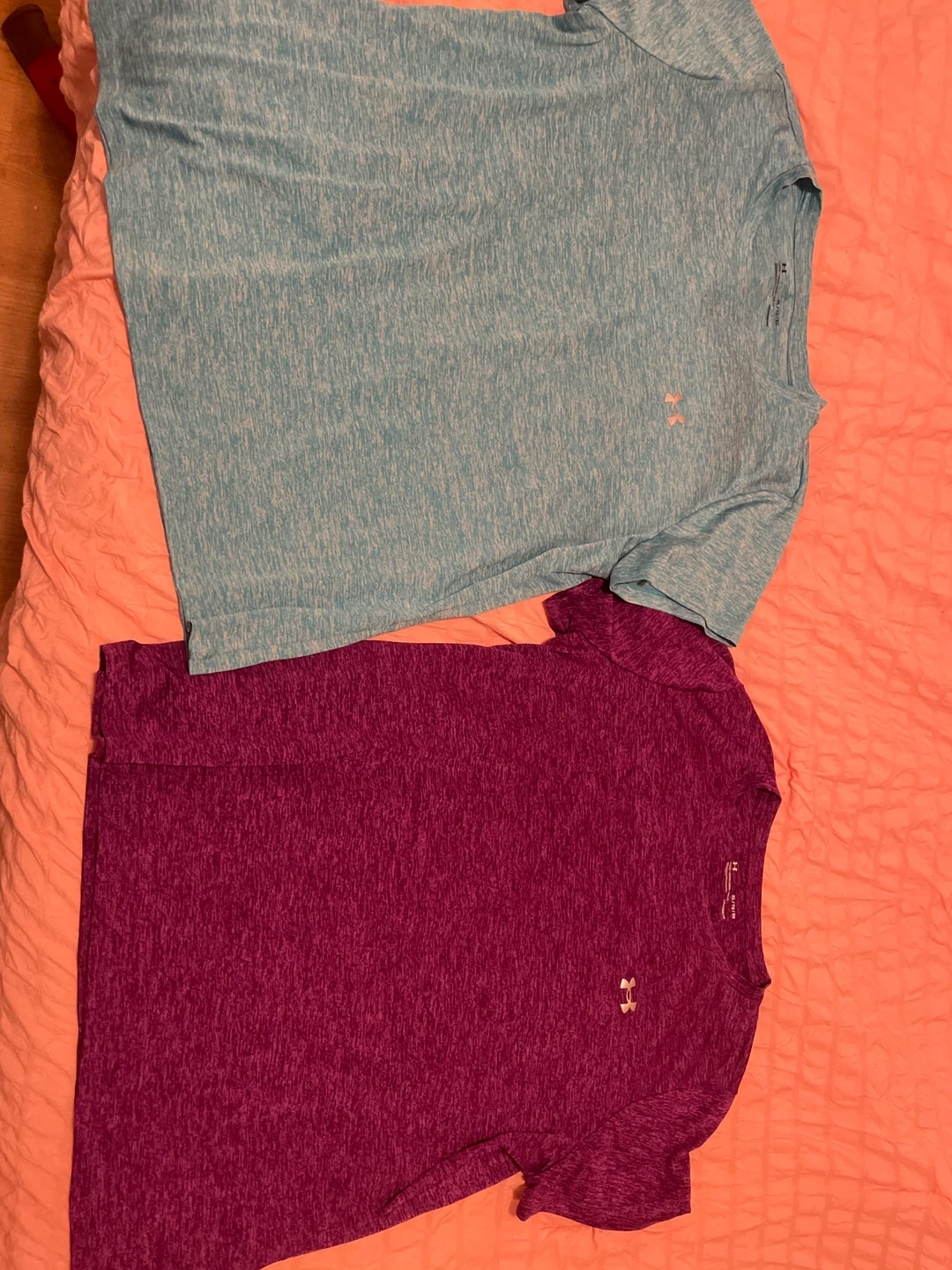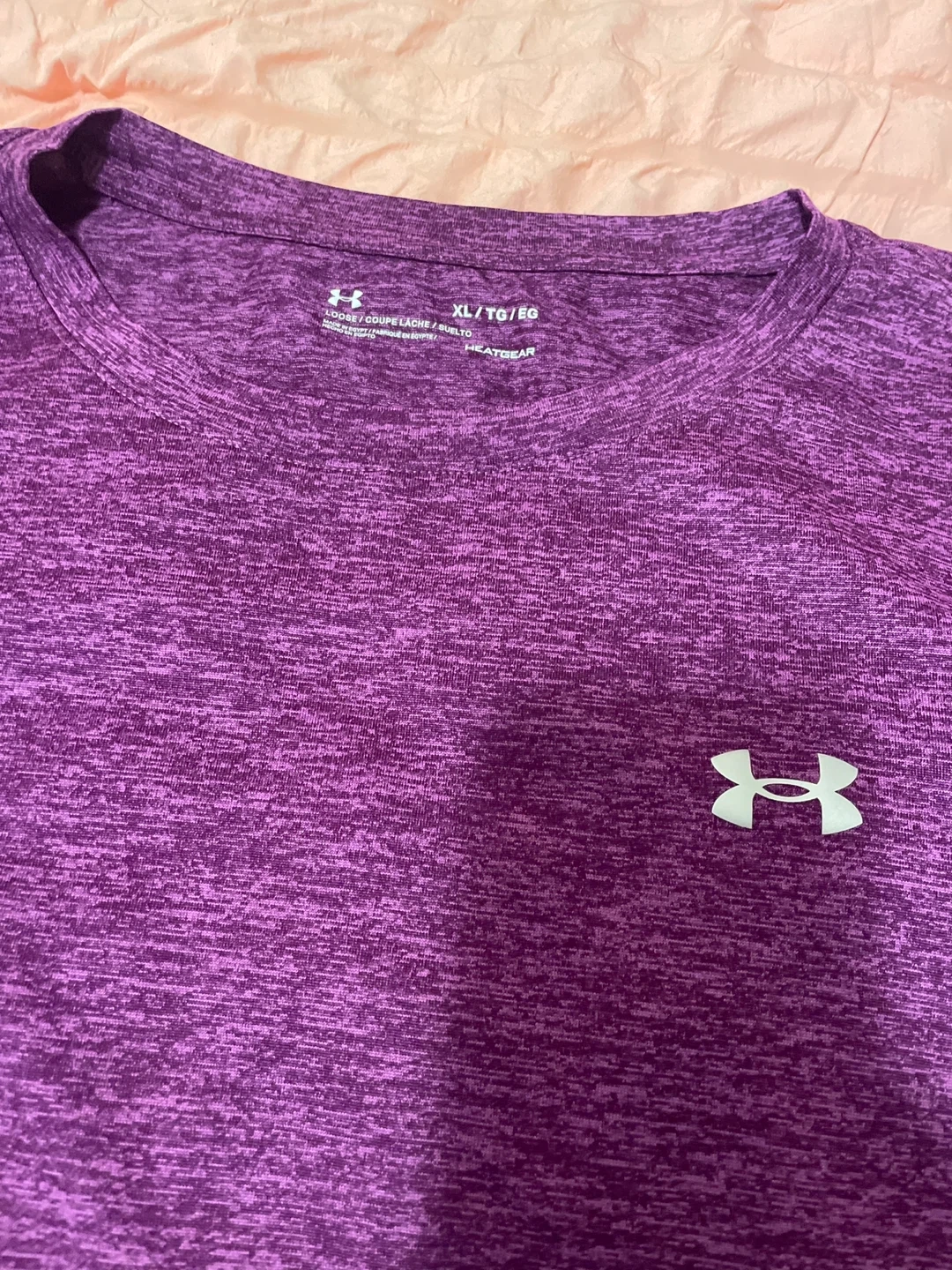 Two Under Armour HeatGear T-shirts for sale! Both are size XL. One is a vibrant purple and the other is a nice light blue