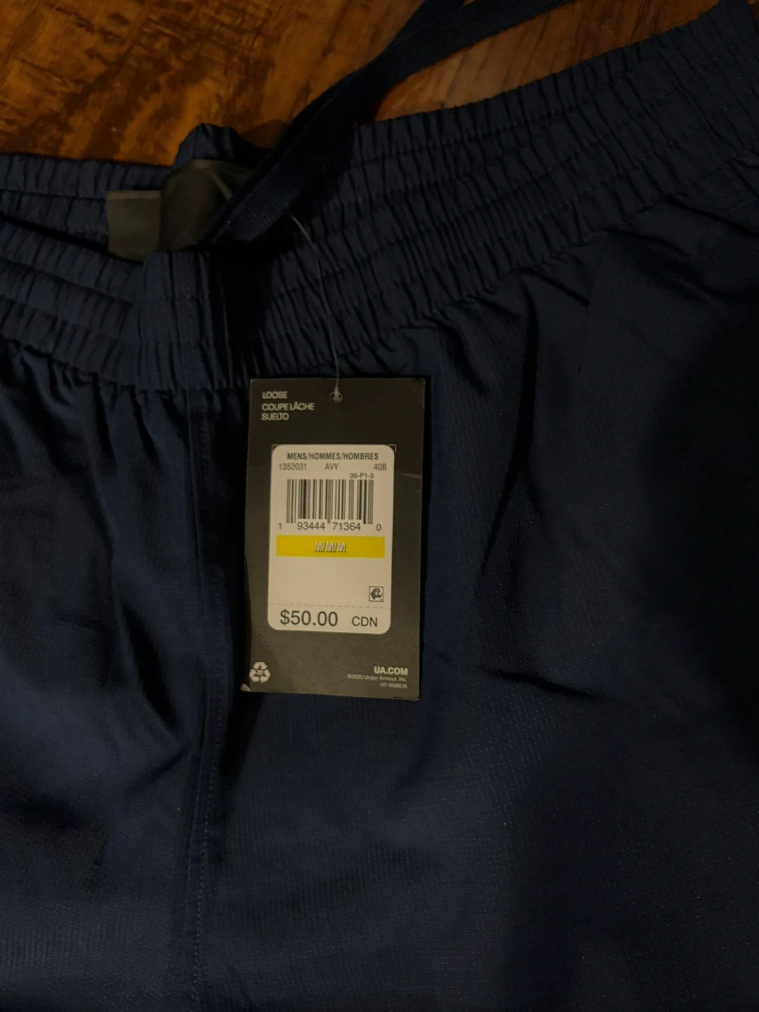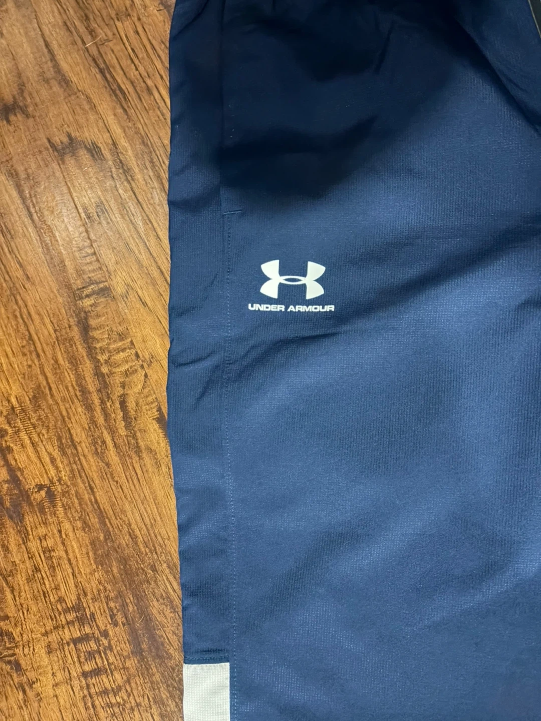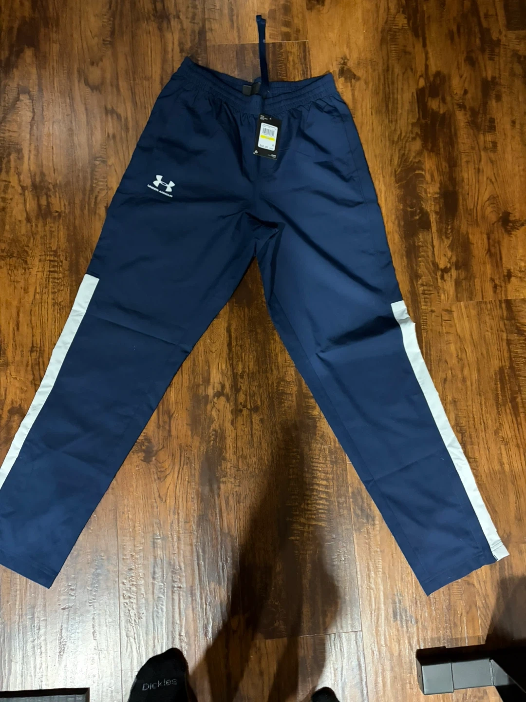 10Selling a pair of Under Armour men's track pants in size medium. They're a stylish navy blue with a white stripe down the side. Originally bought for $50 CDN! Plus tax 25 firm