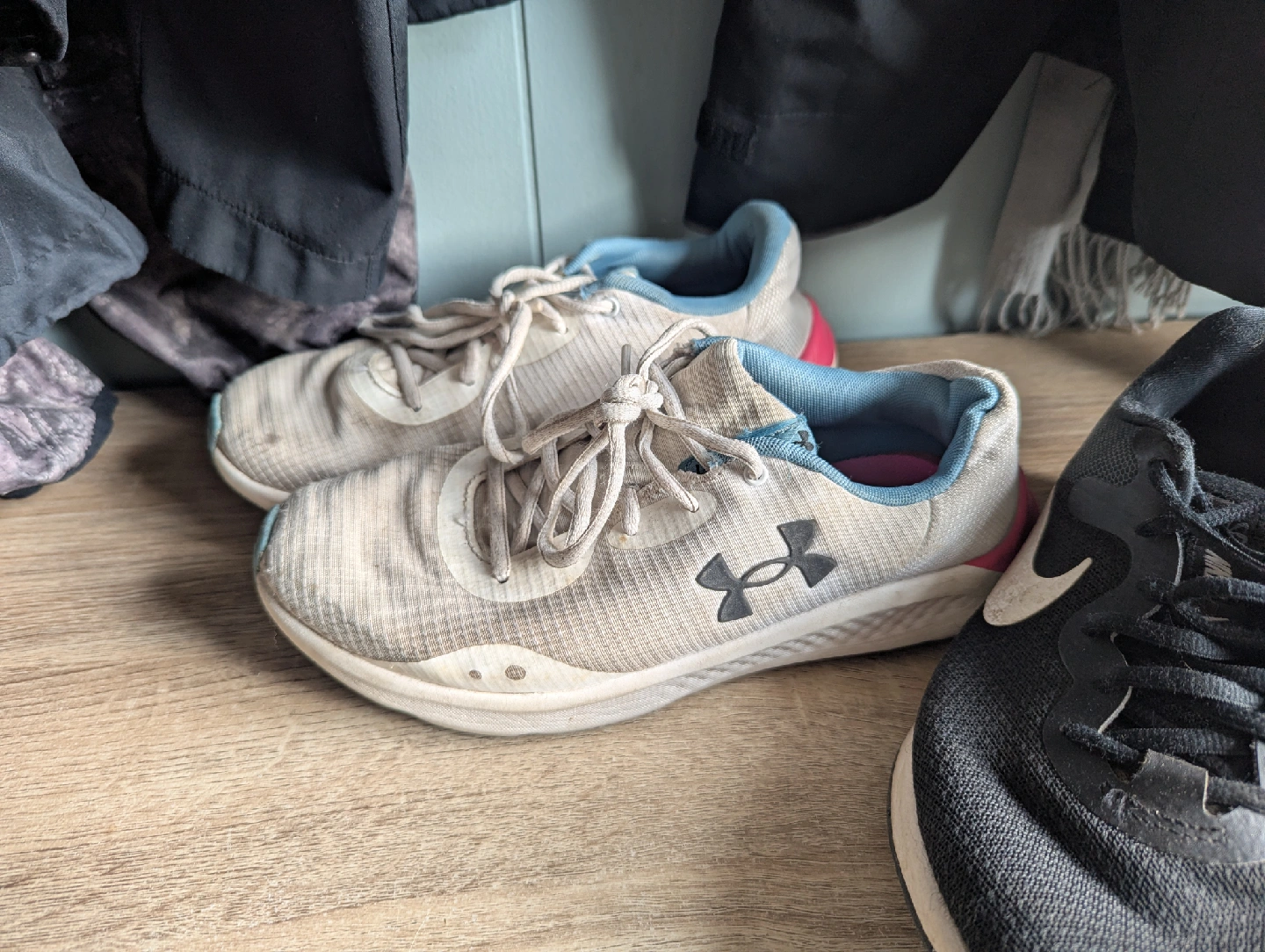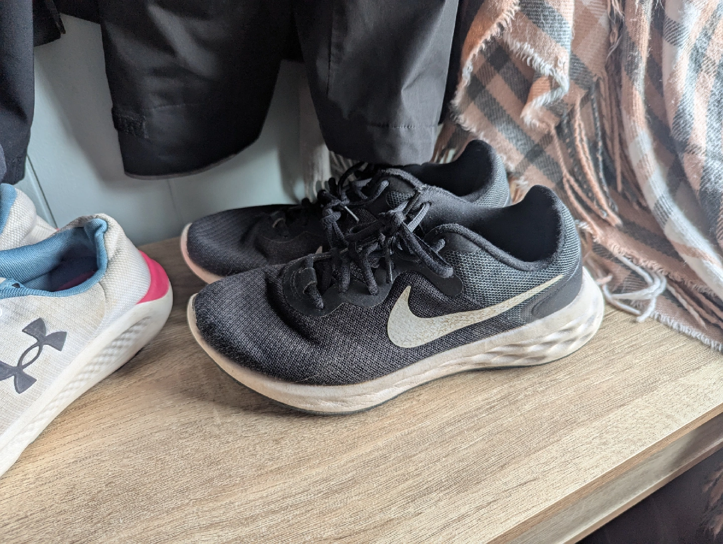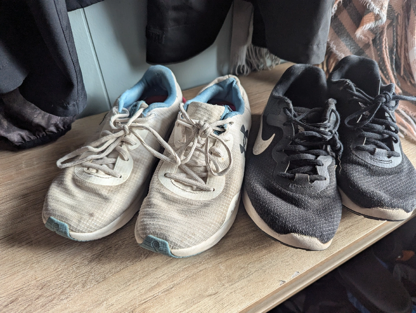 12Selling a pair of Under Armour and Nike running shoes. Both are in used condition. The Under Armour shoes are off-white with a blue interior and the Nike shoes are black with a white swoosh. Great for casual runs or everyday wear! $5 for under armour, $10 for Nike.
