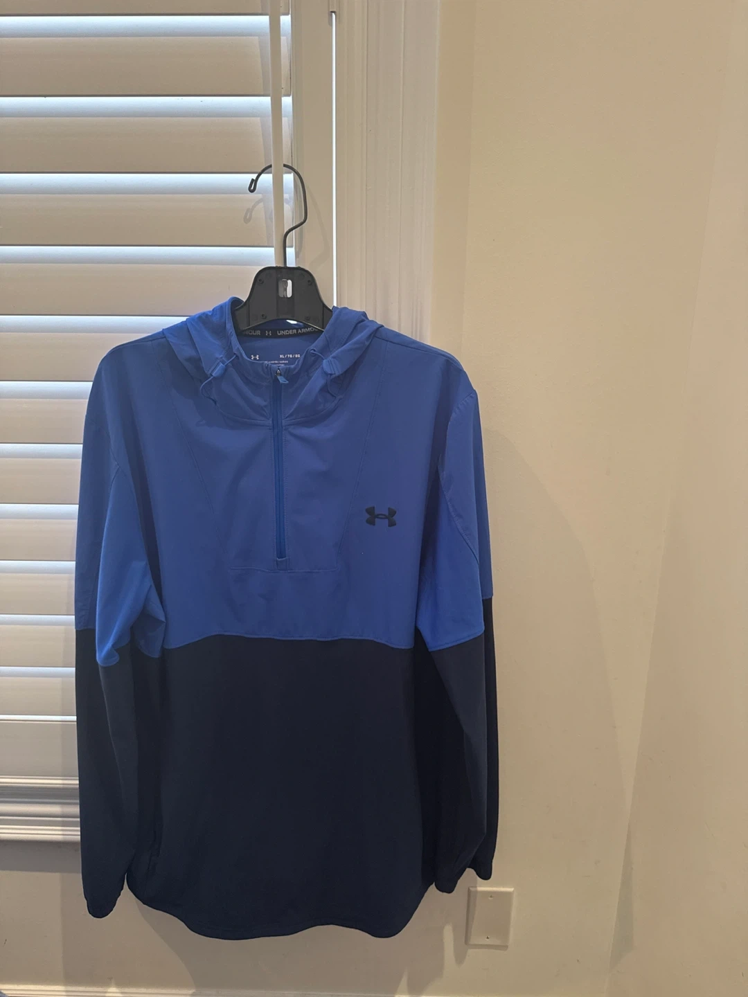 Selling a Under Armour pullover jacket in size X/L. It's a two-tone blue and navy colour. Perfect for layering fitted!