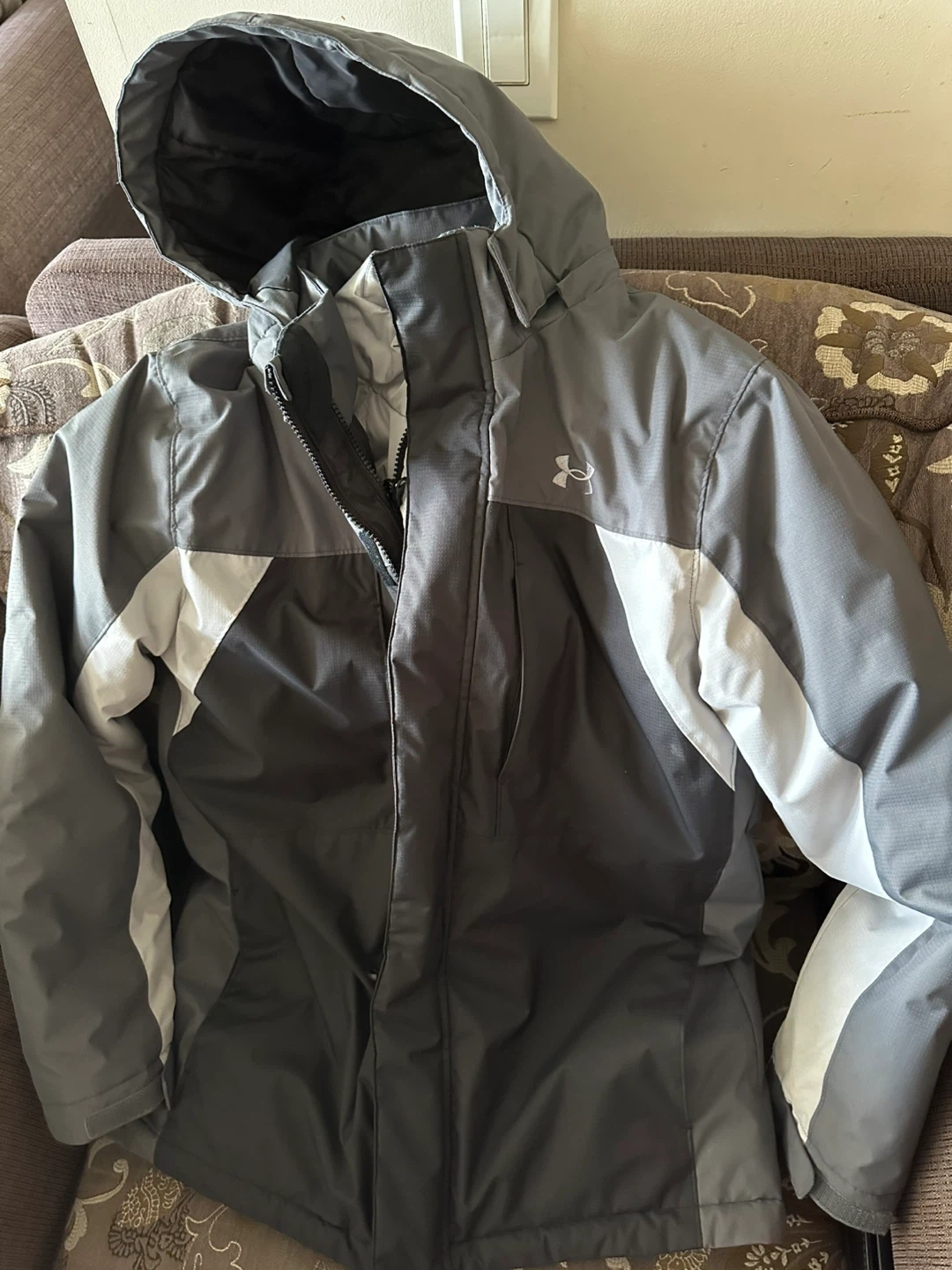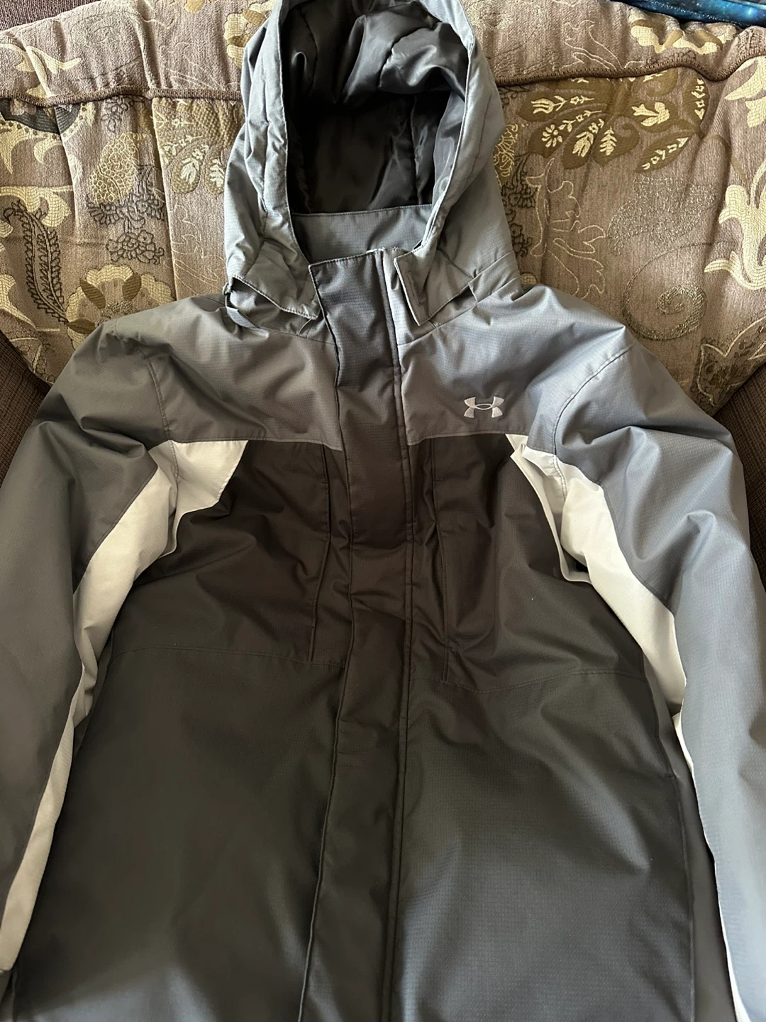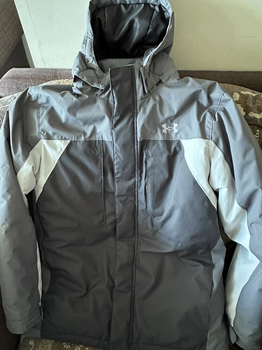 25Selling a grey Under Armour 2 layer jacket in YXL/JTG/EG size. It's in great condition and perfect for staying warm!
