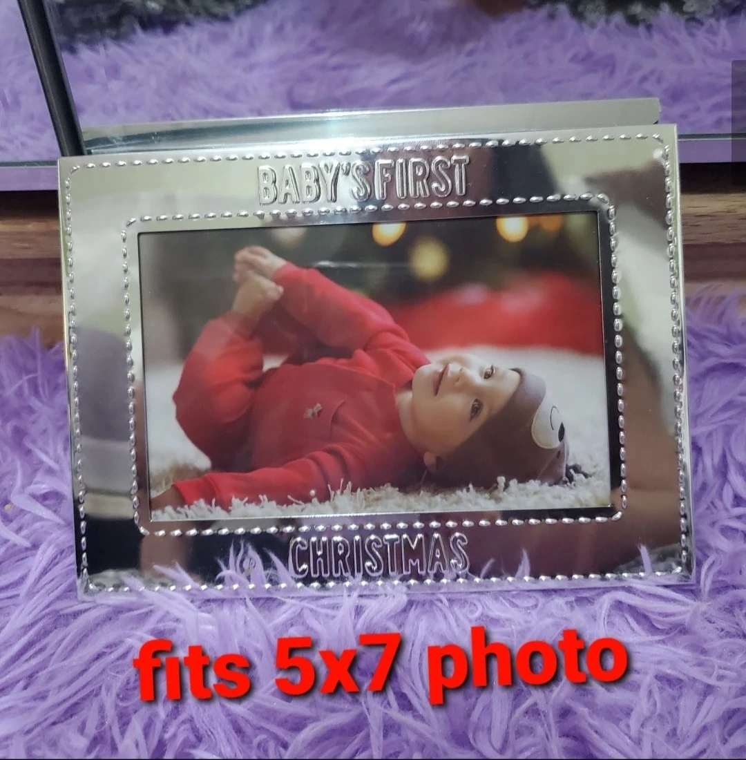 Capture your little one's first Christmas with this sweet photo frame. It's silver-toned with 'BABY'S FIRST CHRISTMAS' embossed on the top and bottom. Fits a 5x7 photo.