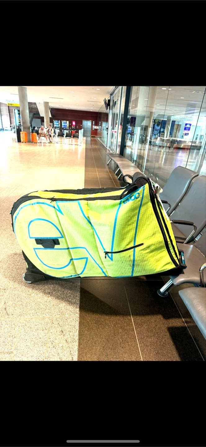 This EVOC Pro Bike Travel Bag in lime is perfect for transporting your road bike, triathlon bike, or mountain bike. It's designed to fit most bike types and includes a reinforced fork mount and separate wheel compartments.