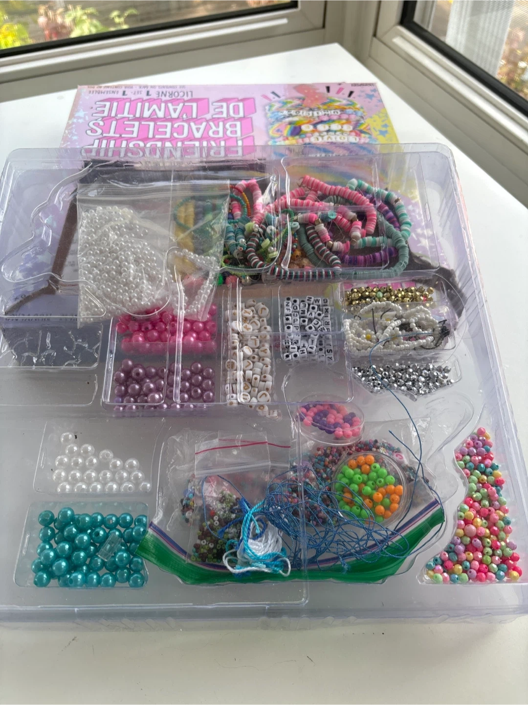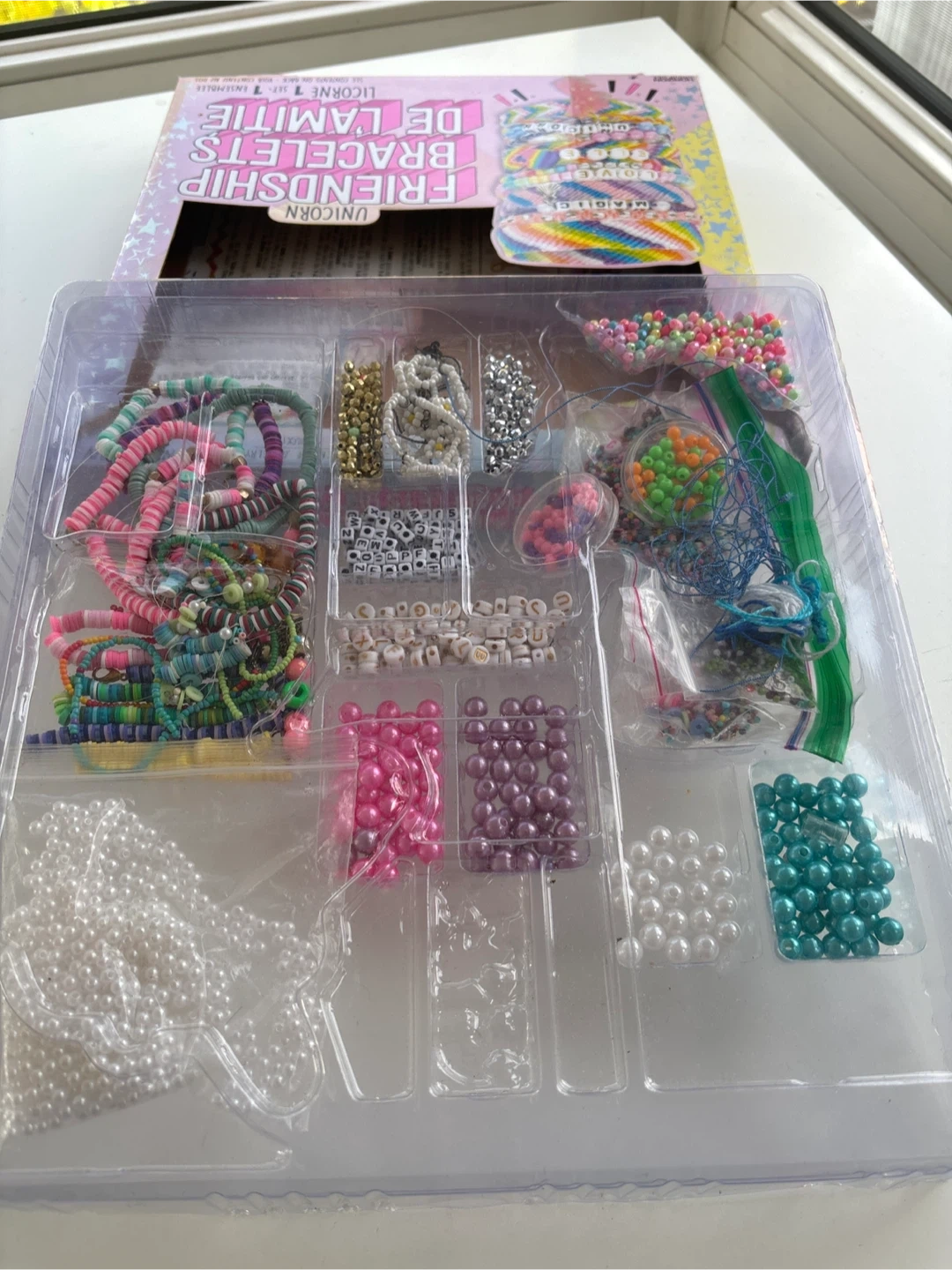 375I'm selling a brand new Unicorn Friendship Bracelet Kit! It comes with everything you need to make lots of colourful bracelets. The kit includes a variety of beads, strings, and other accessories to create unique and personalized friendship bracelets. Perfect for kids and adults who love crafting!