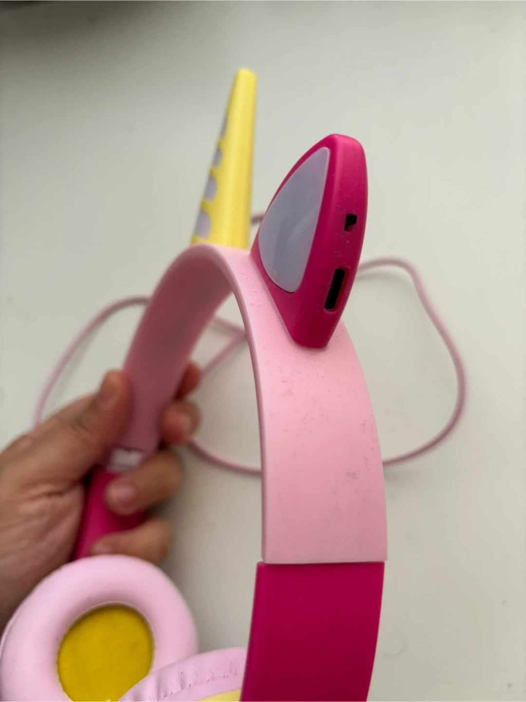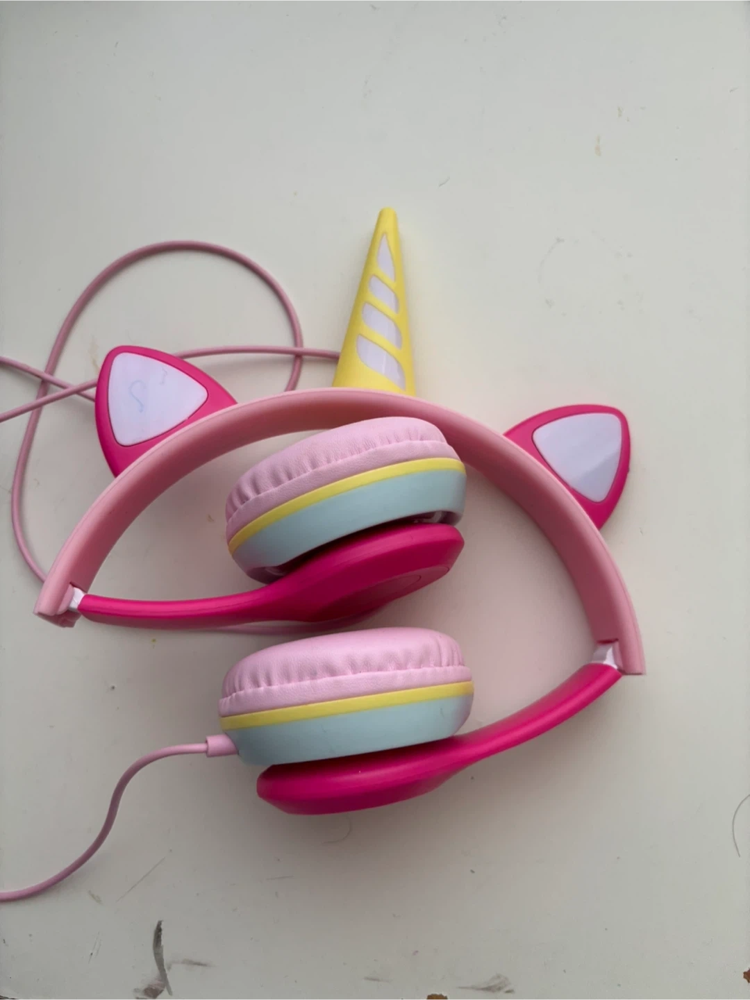 These adorable pink unicorn headphones are perfect for kids! They feature a fun unicorn horn and ears that light up. Great for listening to music or watching videos on tablets or phones.Age5-8