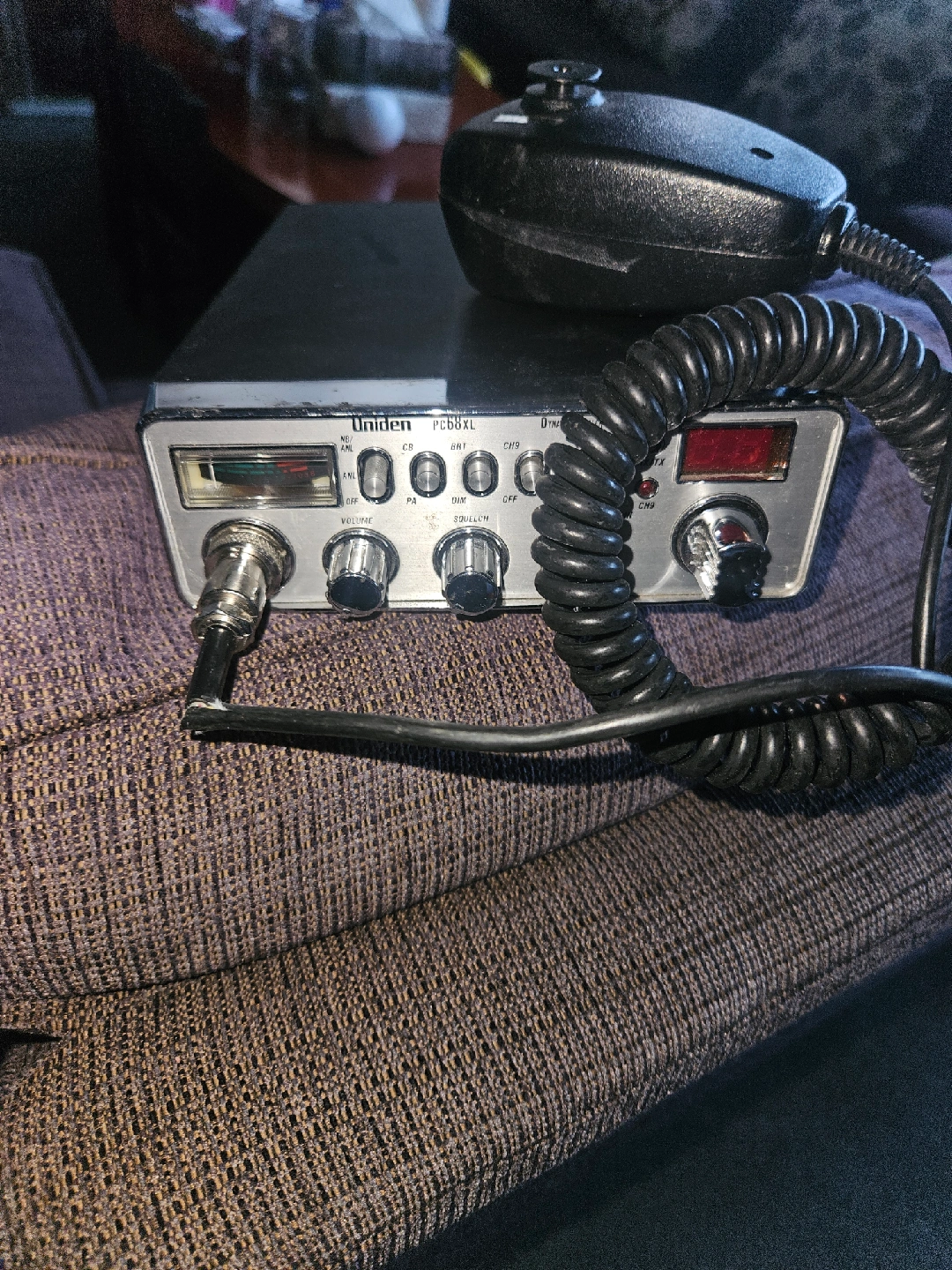 Selling a Uniden PC66XL CB radio. It has some signs of wear and tear, but it's still functional.