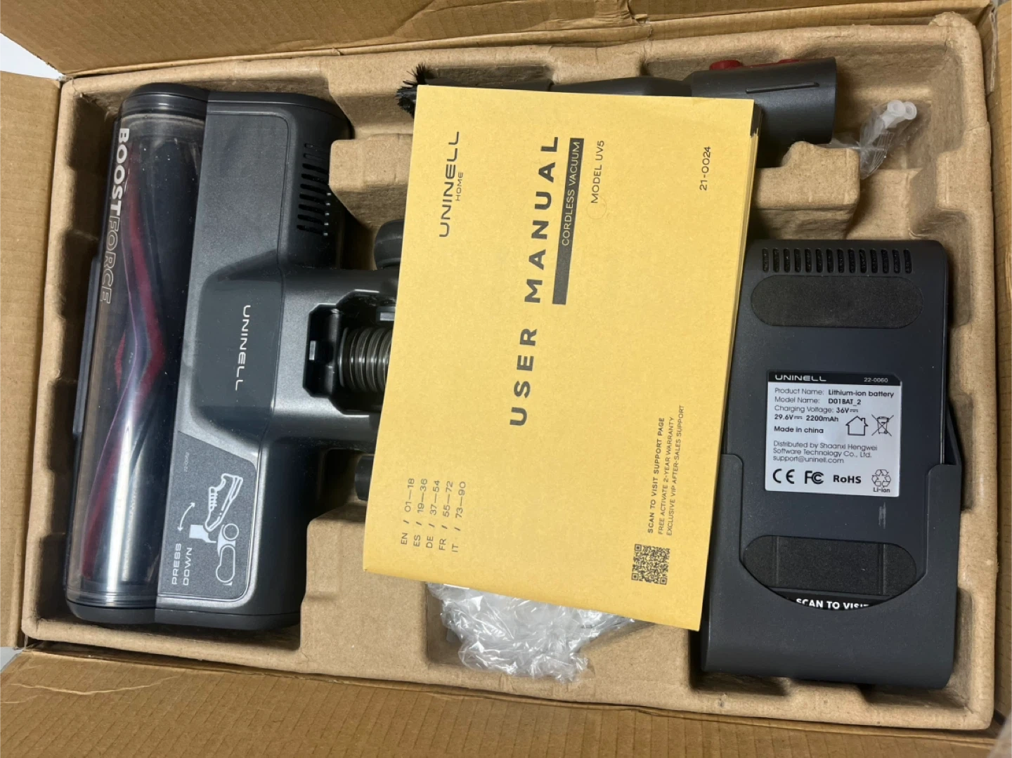 142Selling a like new UNINELL Cordless Stick Vacuum Cleaner, model UV5! It's still in its original box and includes all the components. This vacuum cleaner is designed for convenience and efficiency. Comes with the user manual as well!
