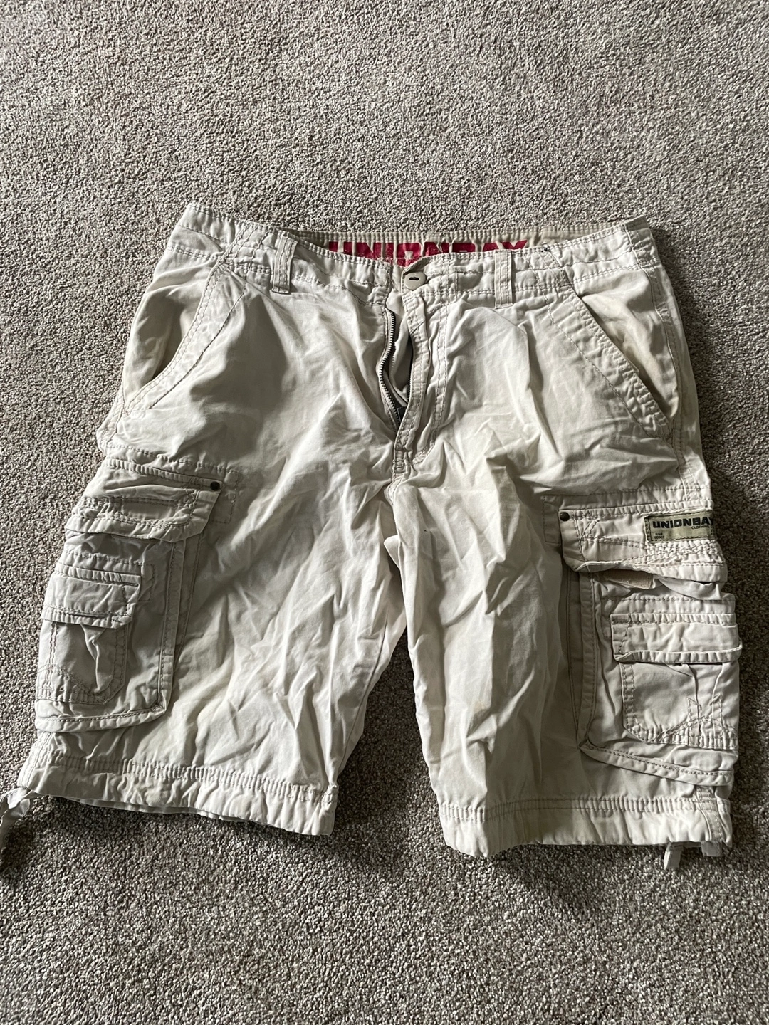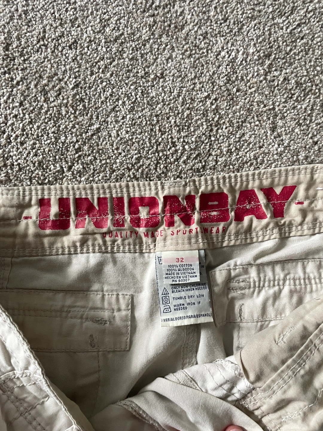Giving away a pair of Unionbay cargo shorts in size 32. They're made from 100% cotton and have a classic cargo style with lots of pockets. Great for casual wear or outdoor activities!
