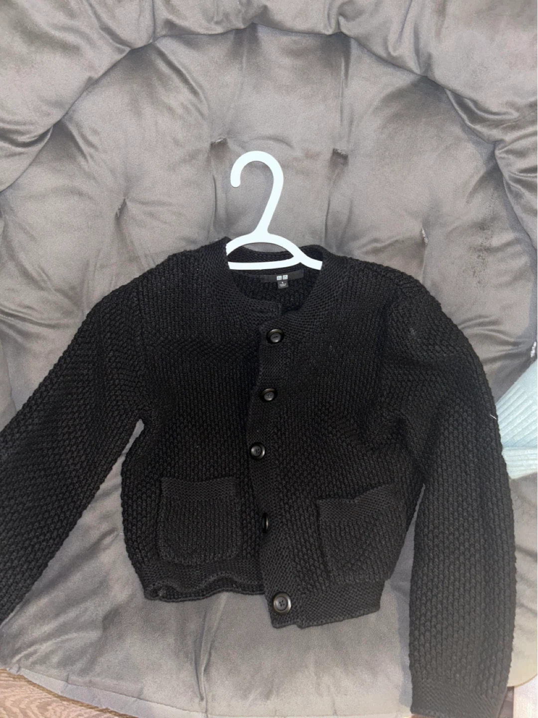 Here's a cozy black cardigan from Uniqlo! It looked very elegant in it, with fine stitches and exquisite textile techniques, making it appear mature and beautiful.