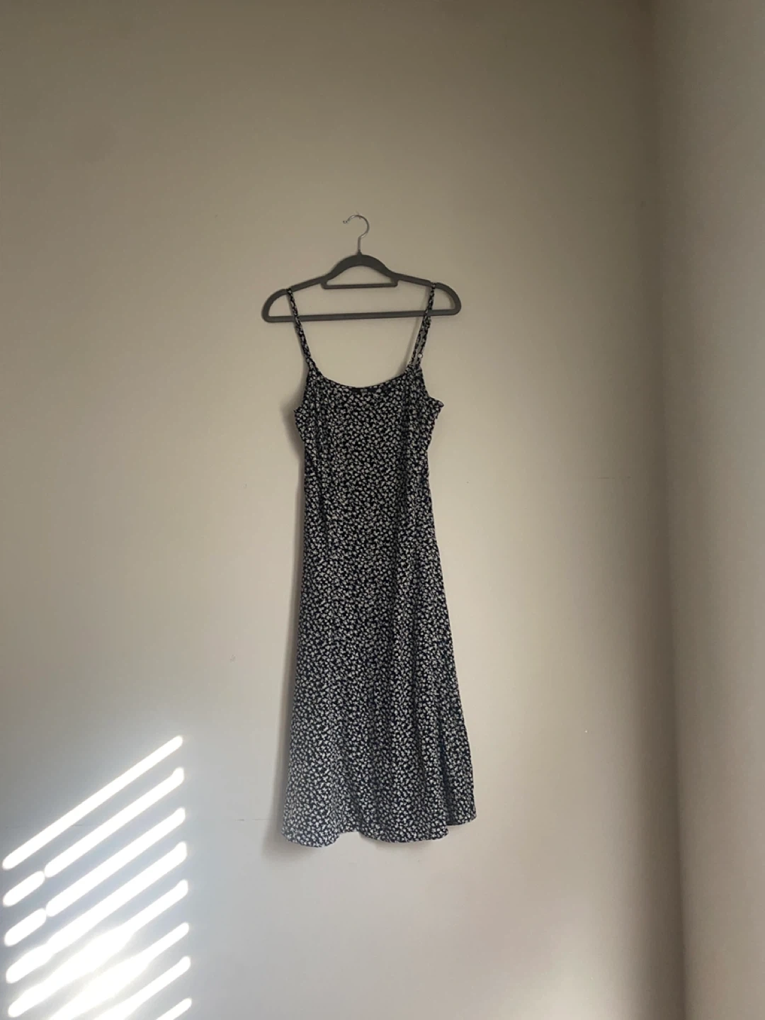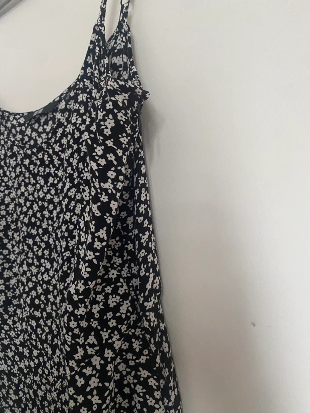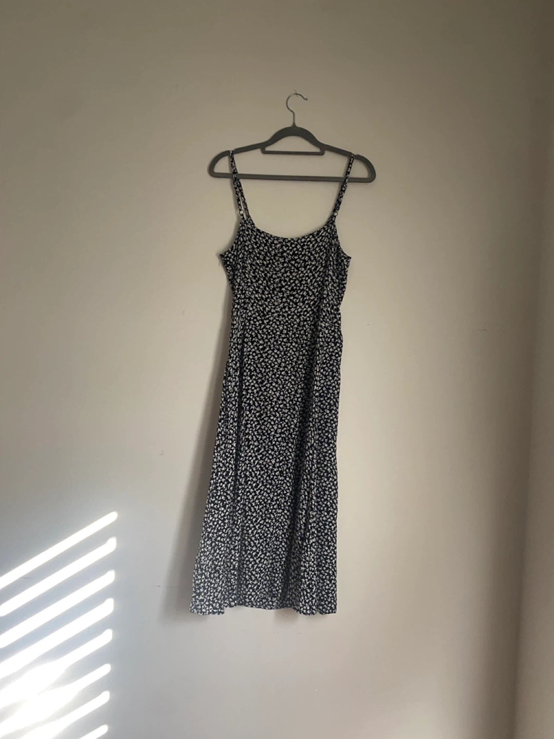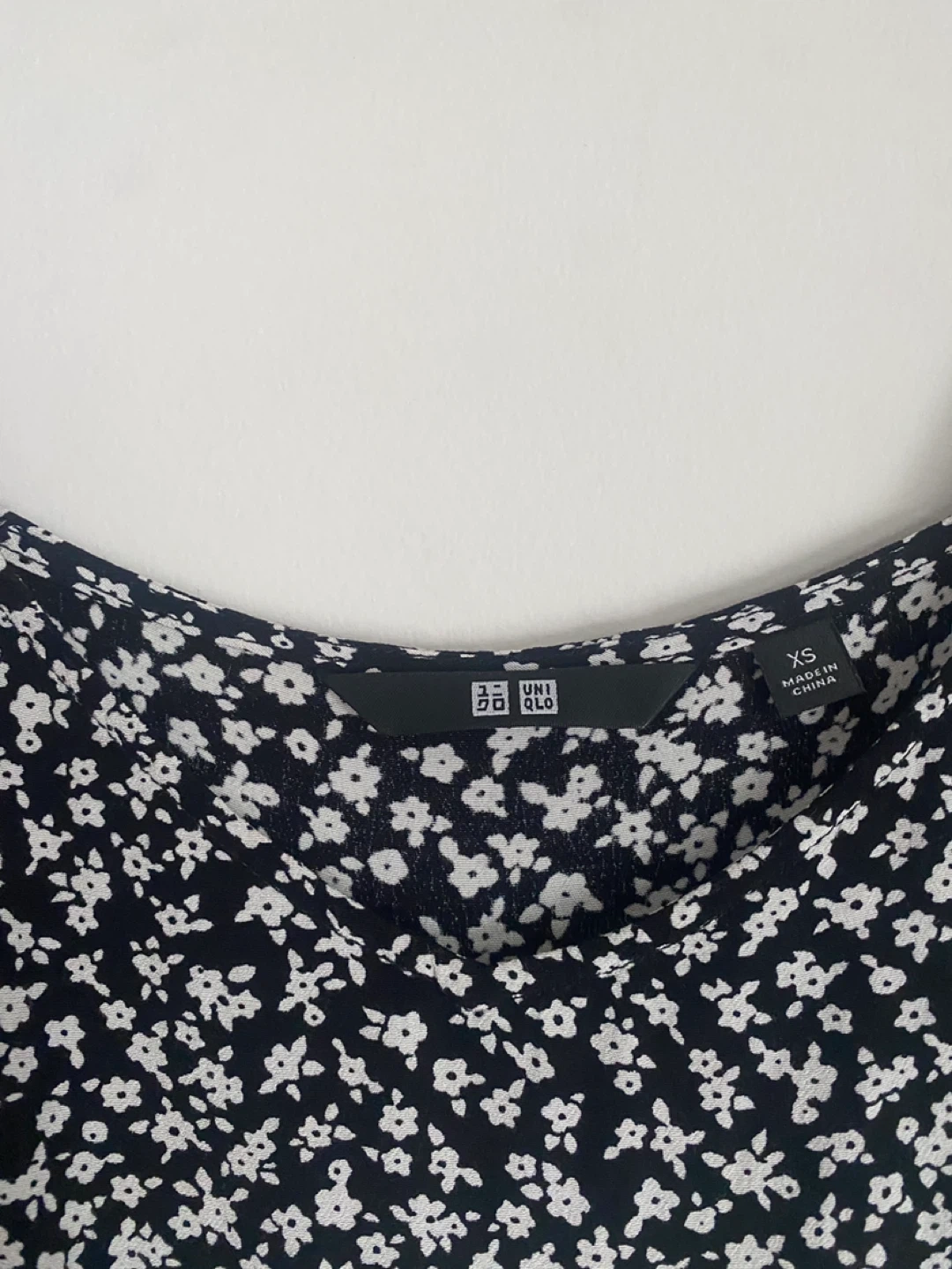 Selling a cute Uniqlo dress with a black and white floral print. It's a size XS and in great condition. Perfect for summer! Only worn once!