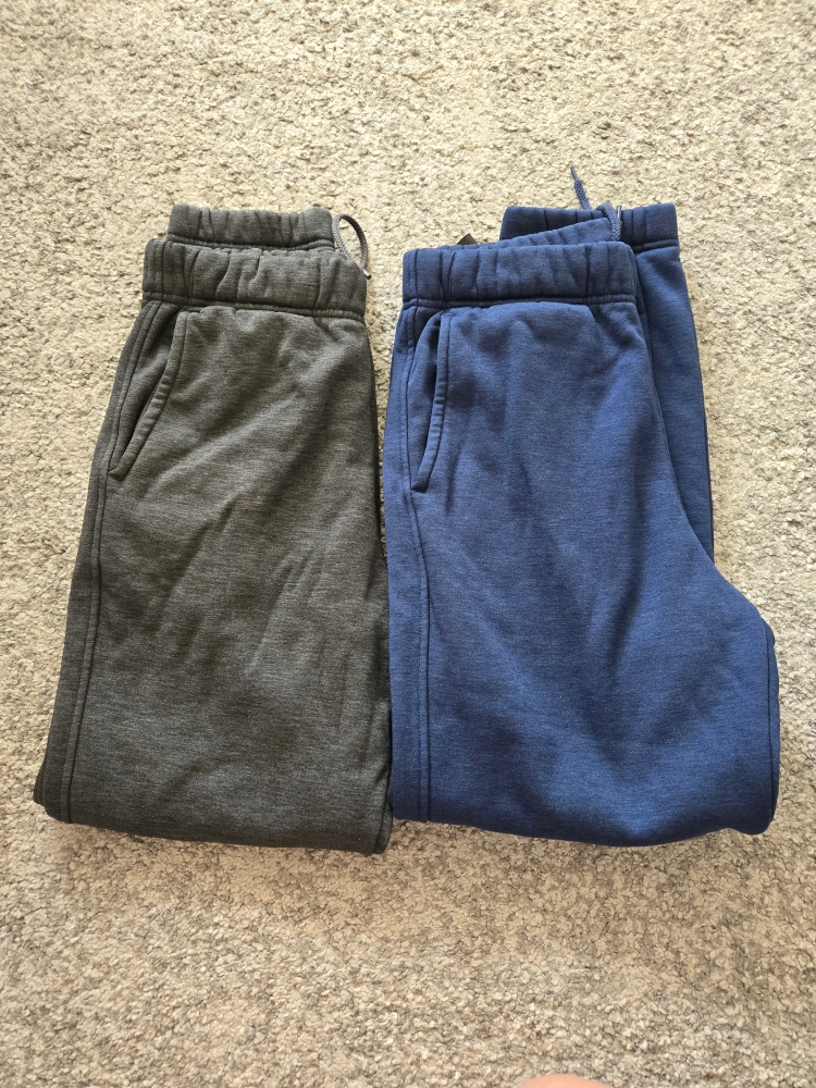 Selling two pairs of sweatpants. One is a grey colour and the other is blue. please see last pic for discoloration on blue pants