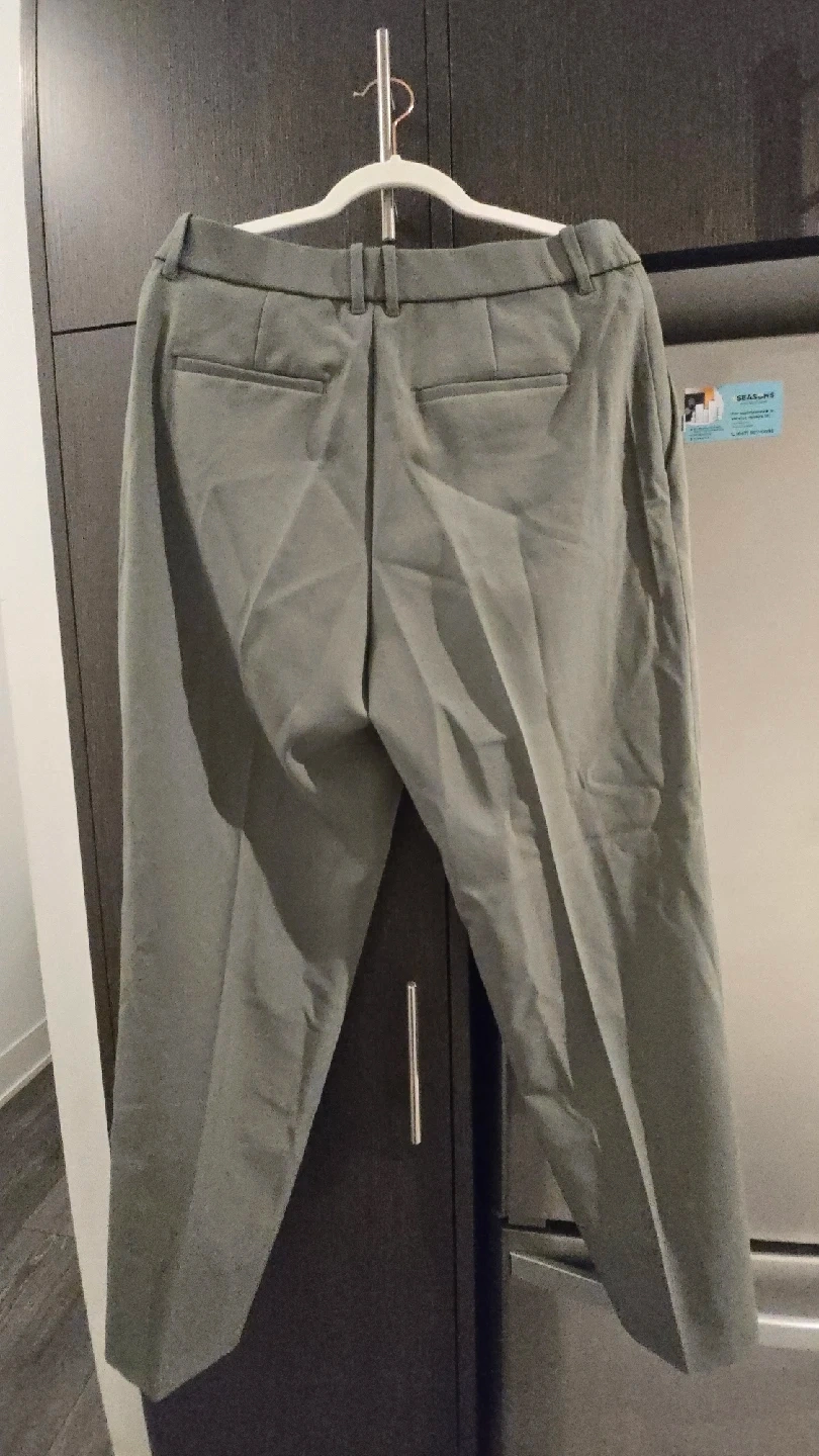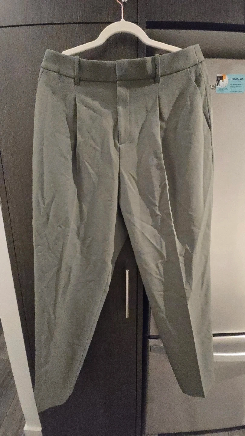 177These are a pair of olive green trousers from Uniqlo in size L. They have a waist of 30-31 inches or 76-78.5 cm and are made of 100% polyester. They're in great condition and ready for a new home!