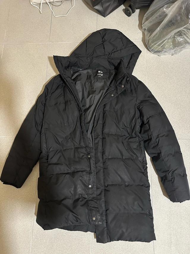 10Stay warm this winter with this gently used Uniqlo puffer jacket, perfect for braving the cold in style. This jacket features a comfortable and insulated design, ideal for everyday wear. It is in good condition, showing only minor signs of wear. Specifications: * Brand: Uniqlo * Size: M * Colour: Black If the ad is up, it's available!