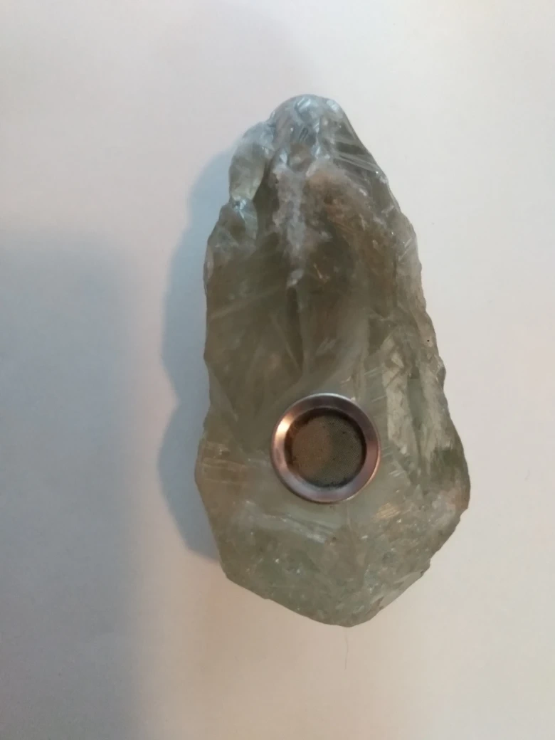 10Hand-carved green quartz smoking pipe. Features a natural, rough exterior and a smooth, drilled bowl. Includes a metal screen. Unique piece for collectors or enthusiasts. never used one of a kind please feel free to check out my other listings have a great day