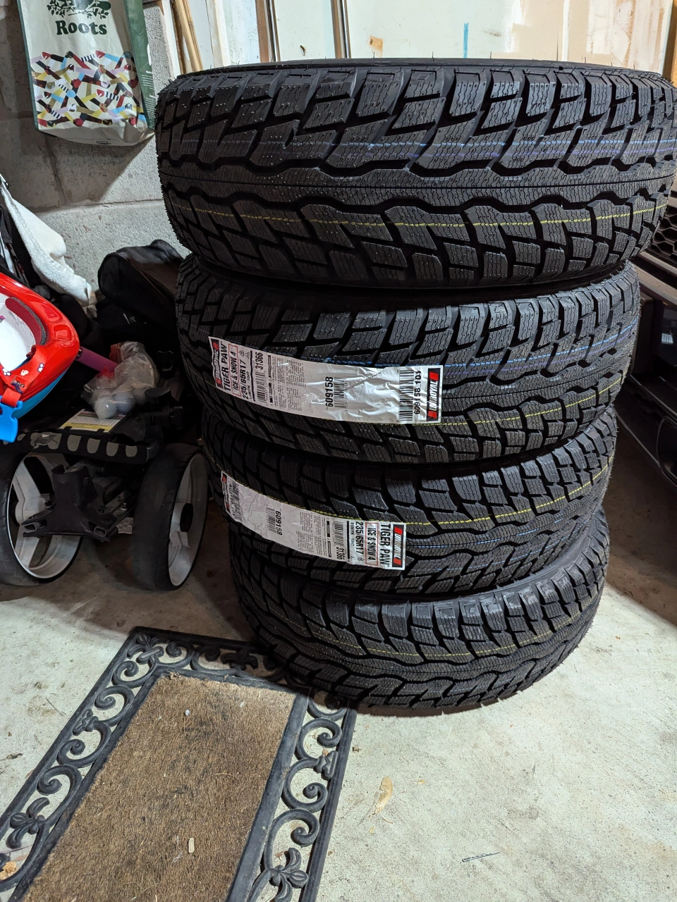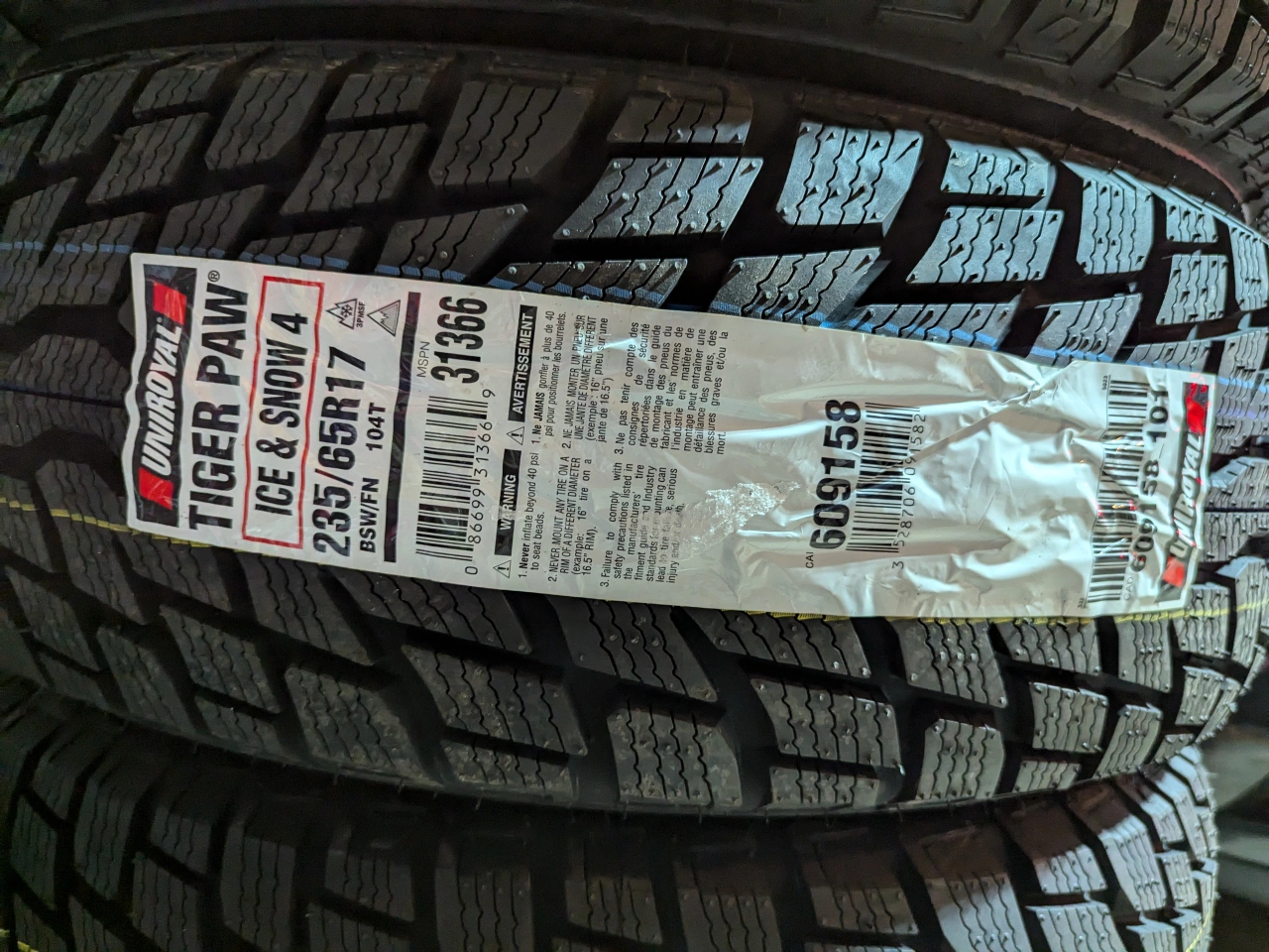 Selling brand new set (4) of Uniroyal Tiger Paw Ice & Snow 4 tires. They're size 235/65R17 and ready for winter! Great tread and in brand new condition. Rims are not included. Can be delivered within Mississauga for additional cost. $450. TIRES ONLY!!