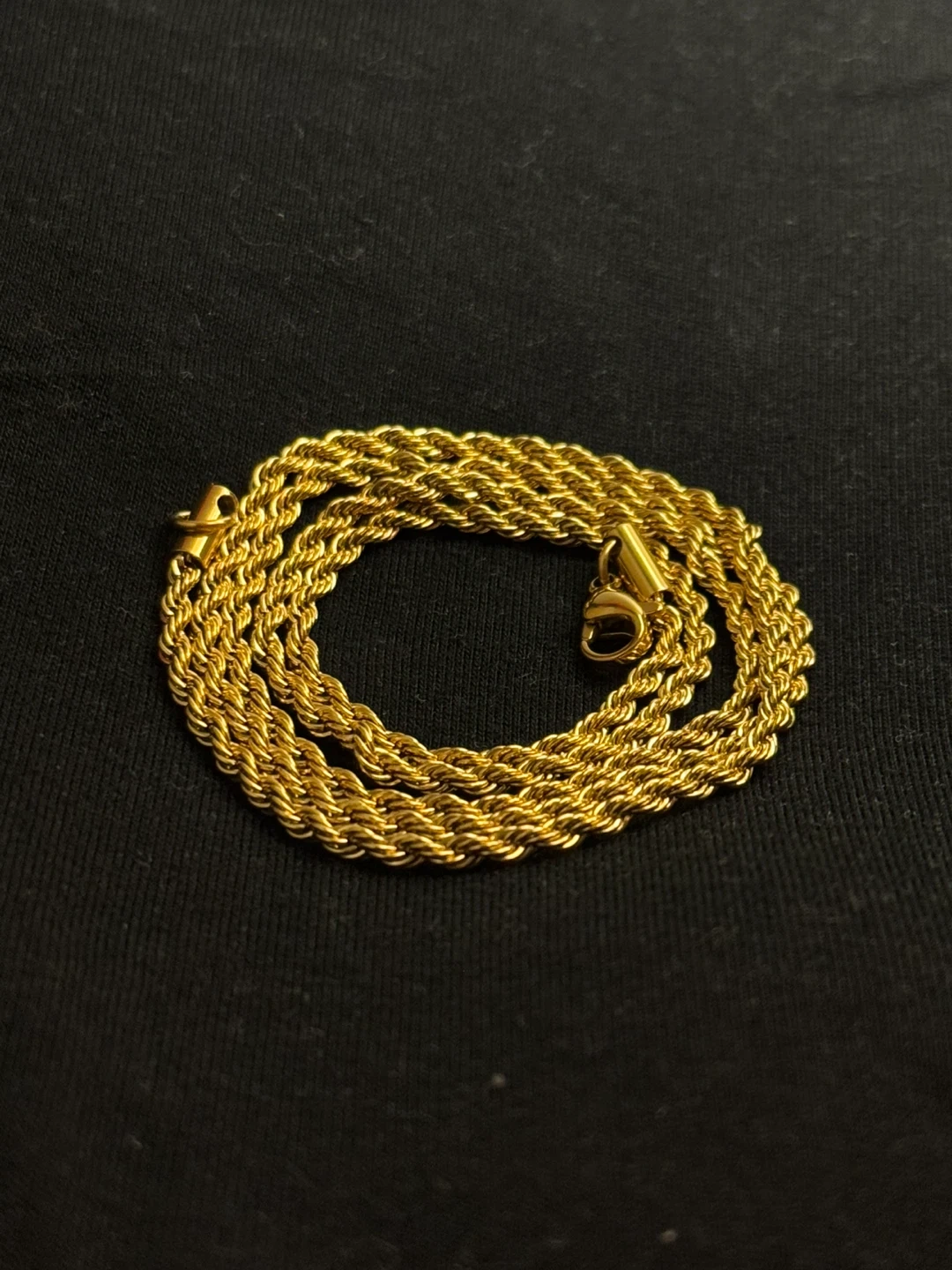 Selling a beautiful gold plated rope twisted chain necklace. Length: 22 inches