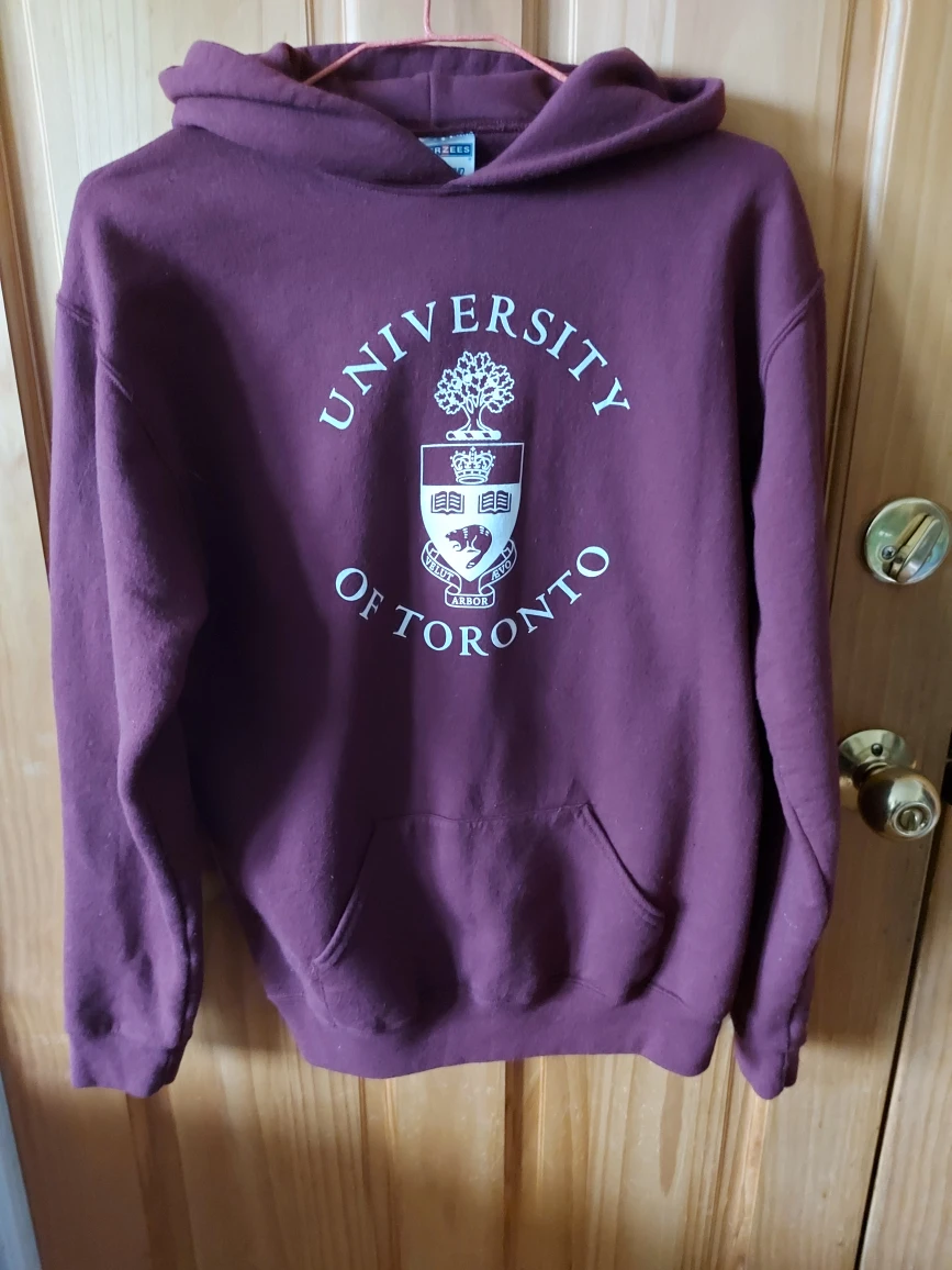 1000+Licensed UofT hoodie. Burgundy. Sized Youth XL, but listed here under Women's Fashion. Fits XXS-XS Women's. Fits me with room to spare; I'm XS. Barely worn (have a lot of UofT stuff!). Pullover. Deep double-lined hood; extremely warm. Pouch pocket. Great condition. Would make lovely gift π. Available for pick-up near Oakwood Village .