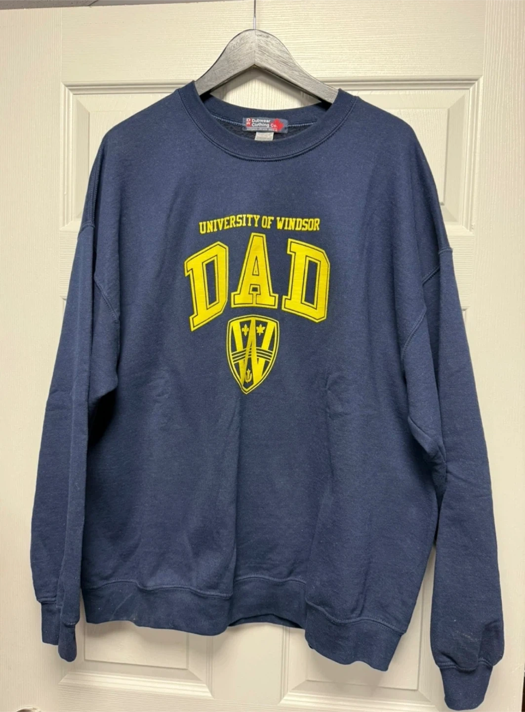 5Selling an authentic University of Windsor 'Dad' sweatshirt! It's in great condition and perfect for any proud parent or alumni of the University of Windsor. Pickup on Ottawa Street between 9-4pm, Monday-Wednesday or Friday! See our other listings for more items! 2710M1259