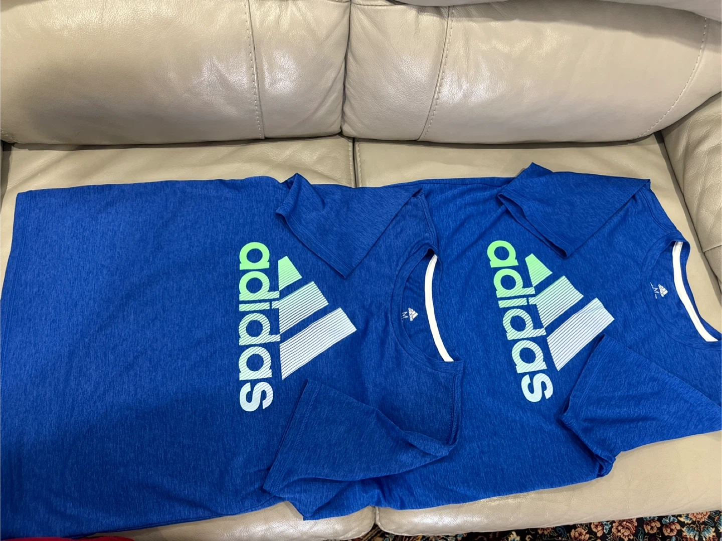 Like new . Pick up at Midland and Lawrence, Scarborough Two blue Adidas t-shirts with the classic logo. Each shirt is size medium.one for$ 5 or both for $8.