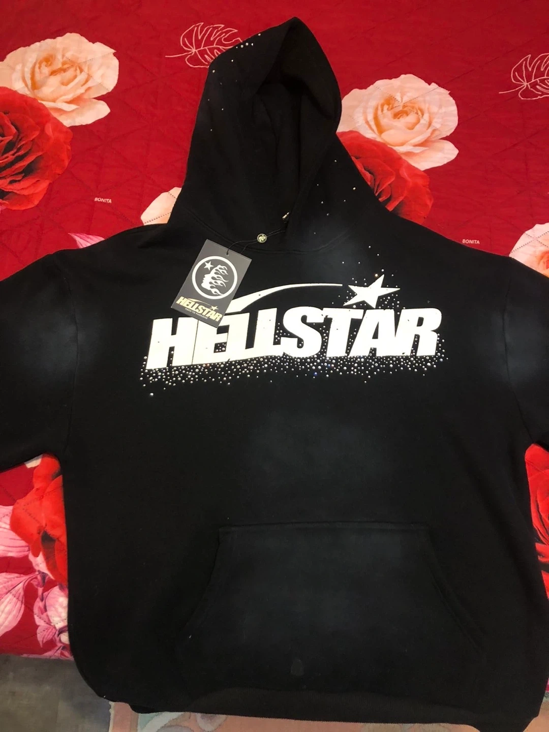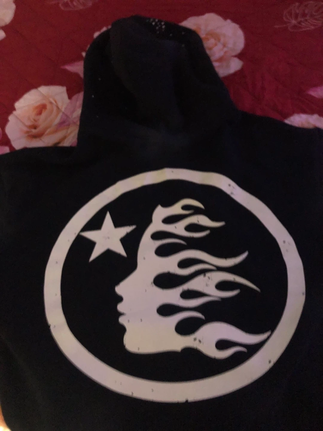 Selling a black Hellstar hoodie. The hoodie has the Hellstar logo on the front and back. It's in great condition!