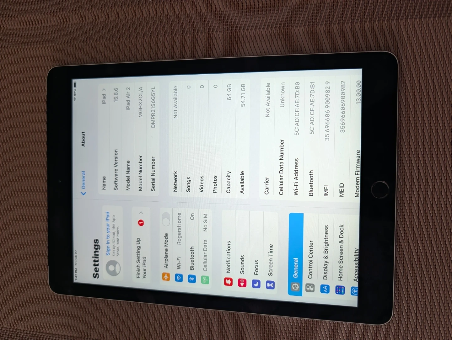Apple iPad Air 2 64GB Wi-Fi and sim card enabled.
