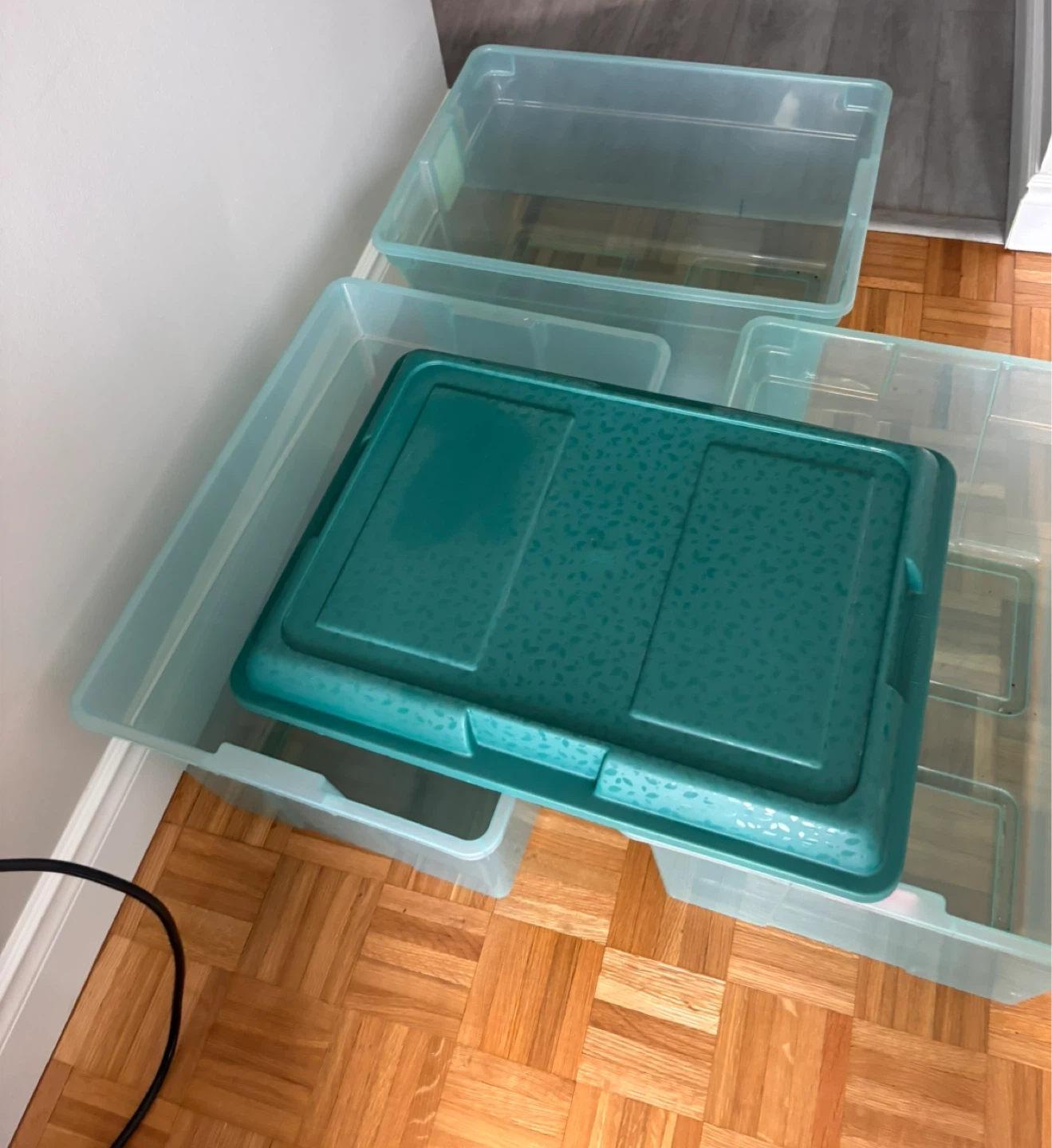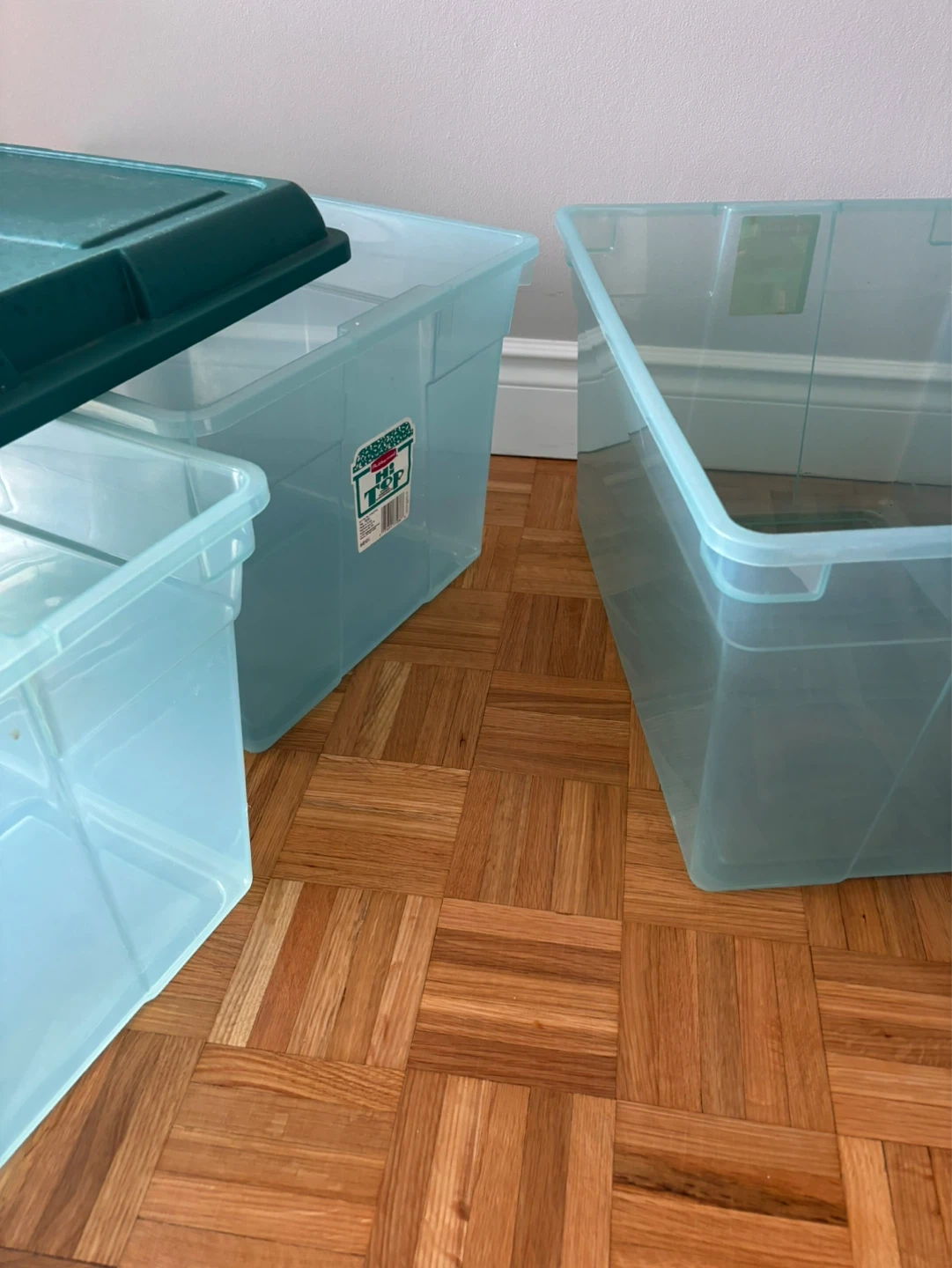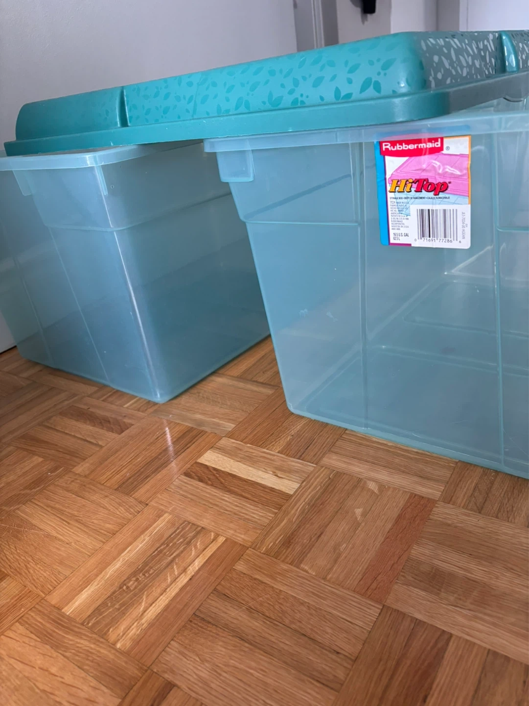 Please note: only 1 tote has a teal lid, the other lids are not teal.