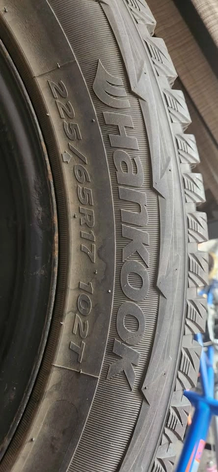 P225/65R17 102T Hankook Ipike Winter Tires on steel rims set of 4.