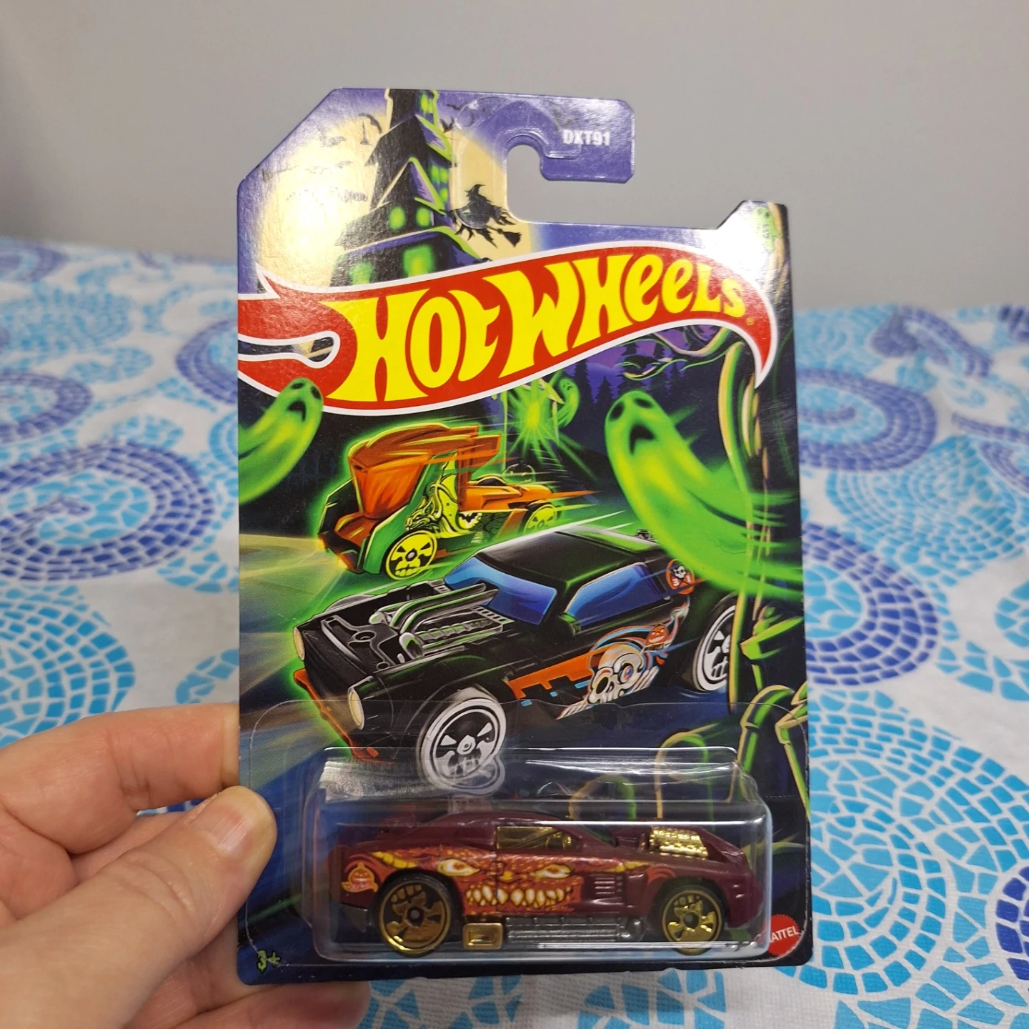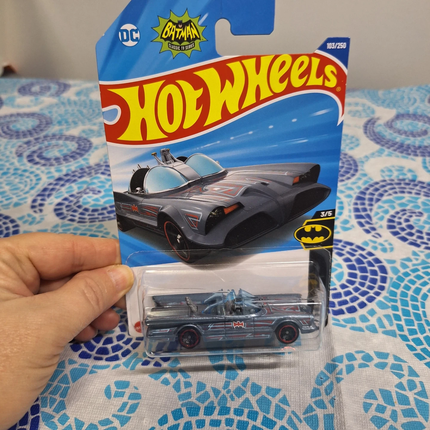 Includes a Batman Classic TV Series Batmobile, a 'Lets Race' donut car, a 2025 Hot Wheels car, and a Halloween-themed Hot Wheels car. All are in their original packaging.